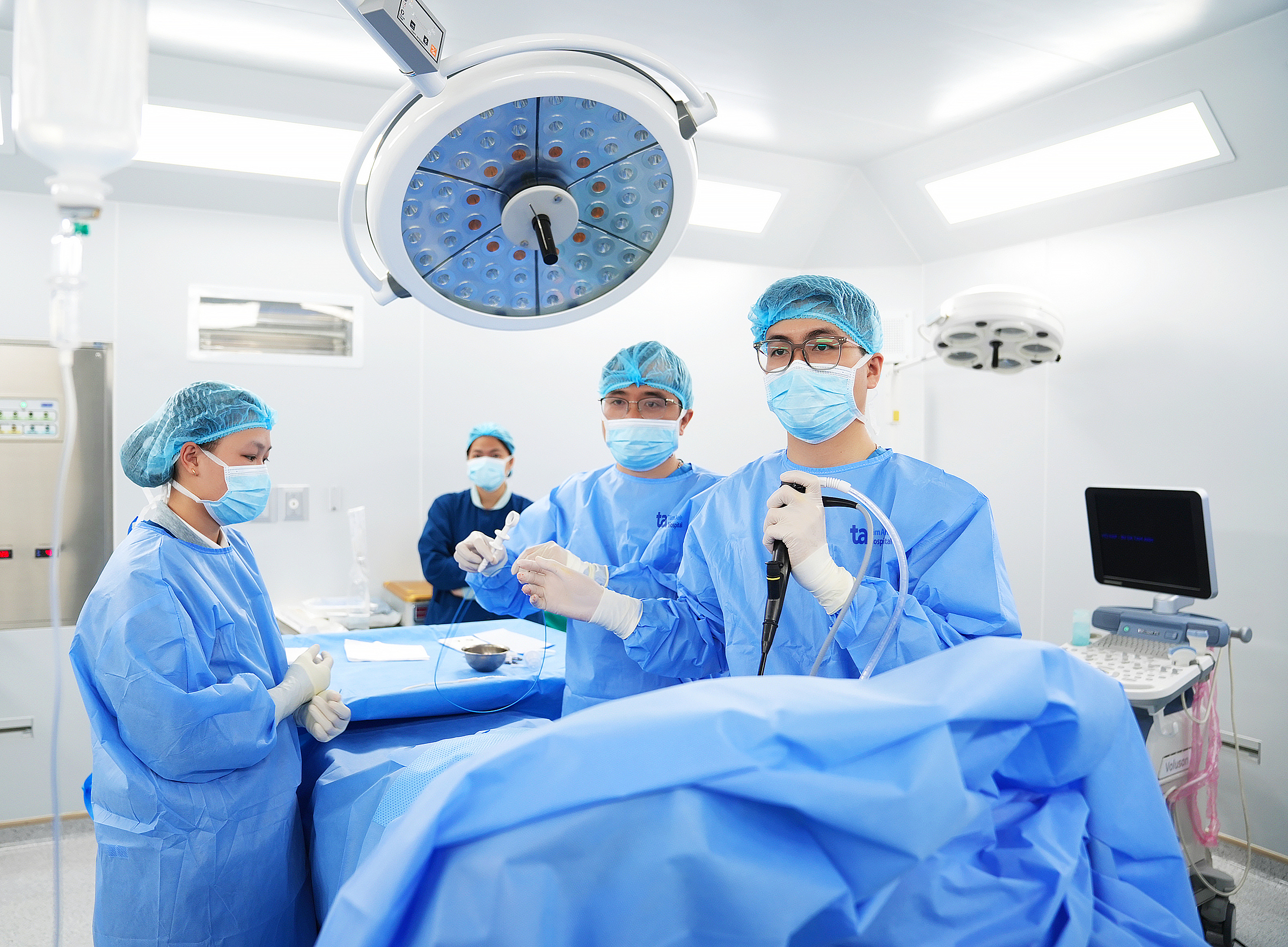 Medical team performing a thoracoscopy to treat a patient with pleural effusion. Illustrative photo: Tam Anh General Hospital
