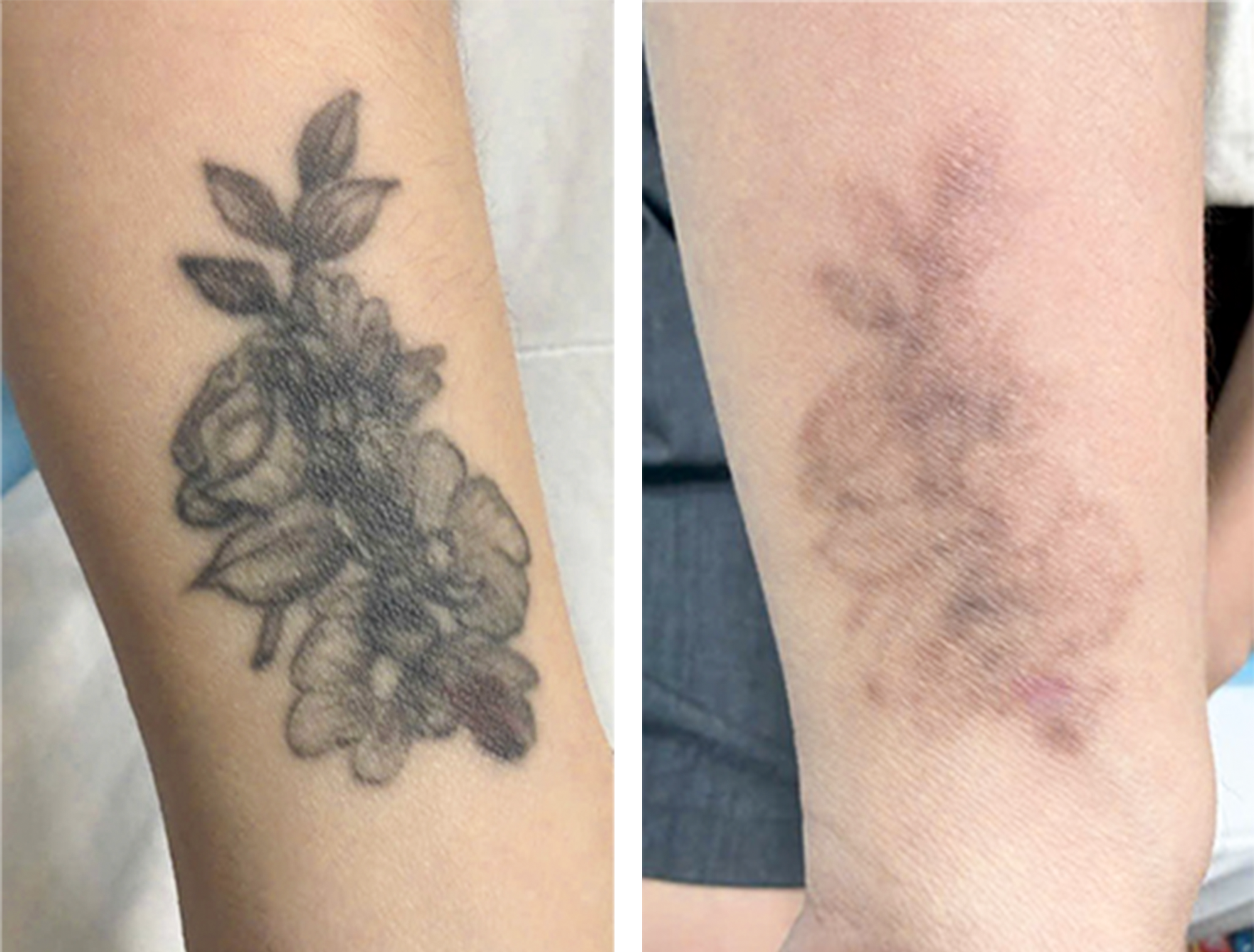 Mai's tattoo significantly faded after 9 pico laser removal sessions. *Photo: Tam Anh General Hospital* |