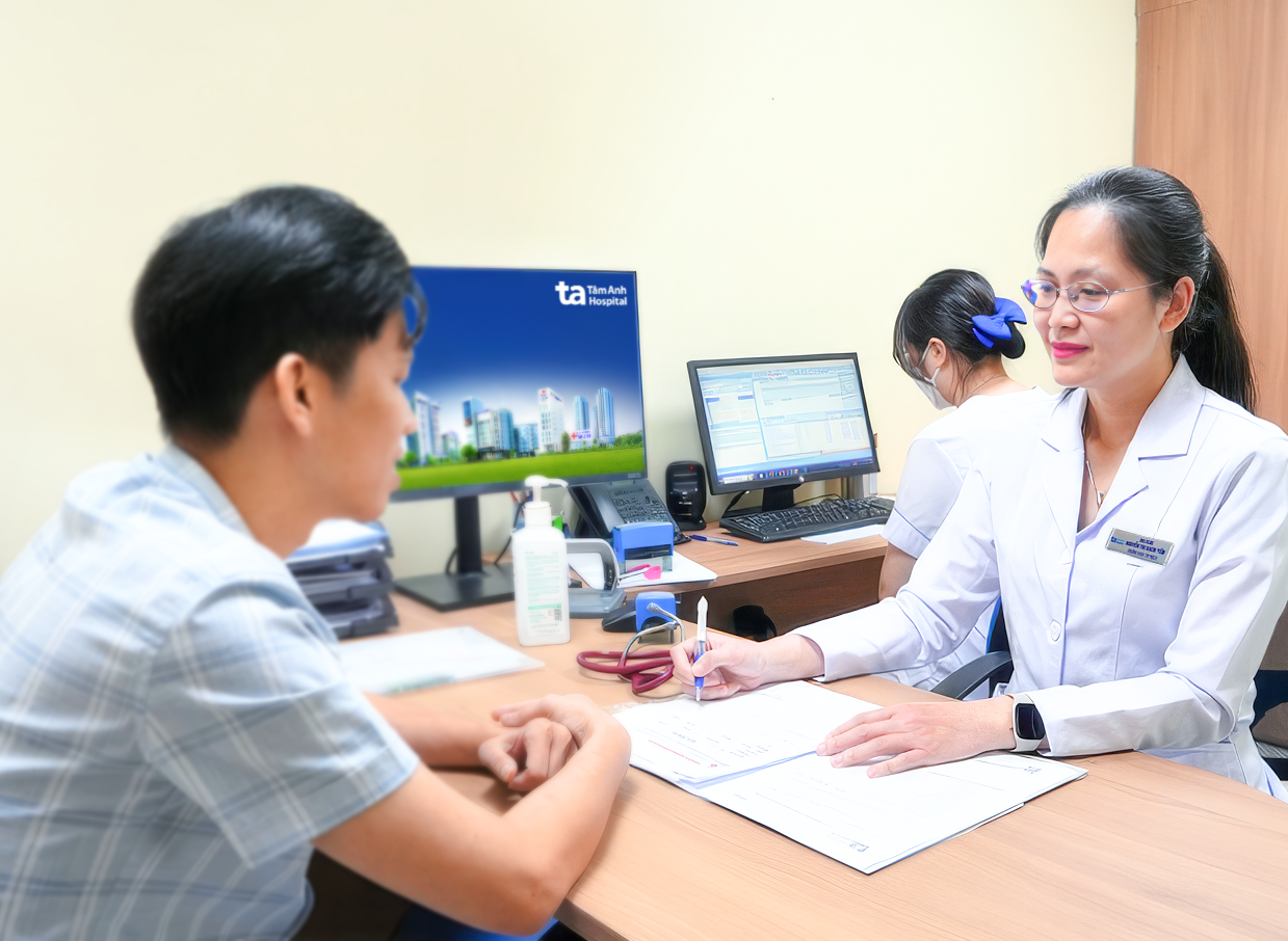 Dr. Thu examines Tu during a follow-up appointment. Photo: Tam Anh General Hospital |