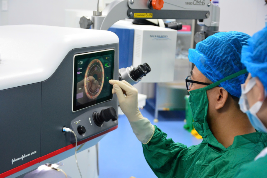 A doctor performing myopia correction surgery on a patient. *Photo: Tien Duc* |