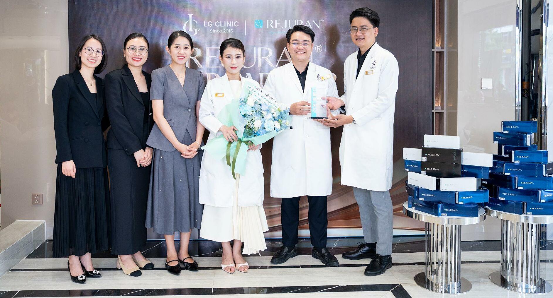 LG Clinic's management received flowers and a certificate of recognition from a Rejuran representative – a Korean skin rejuvenation brand – in Ho Chi Minh City in mid-12/2025. The manufacturer praised the Vietnamese enterprise for not only leading in quantity but also focusing on operations, training, and customer engagement processes.