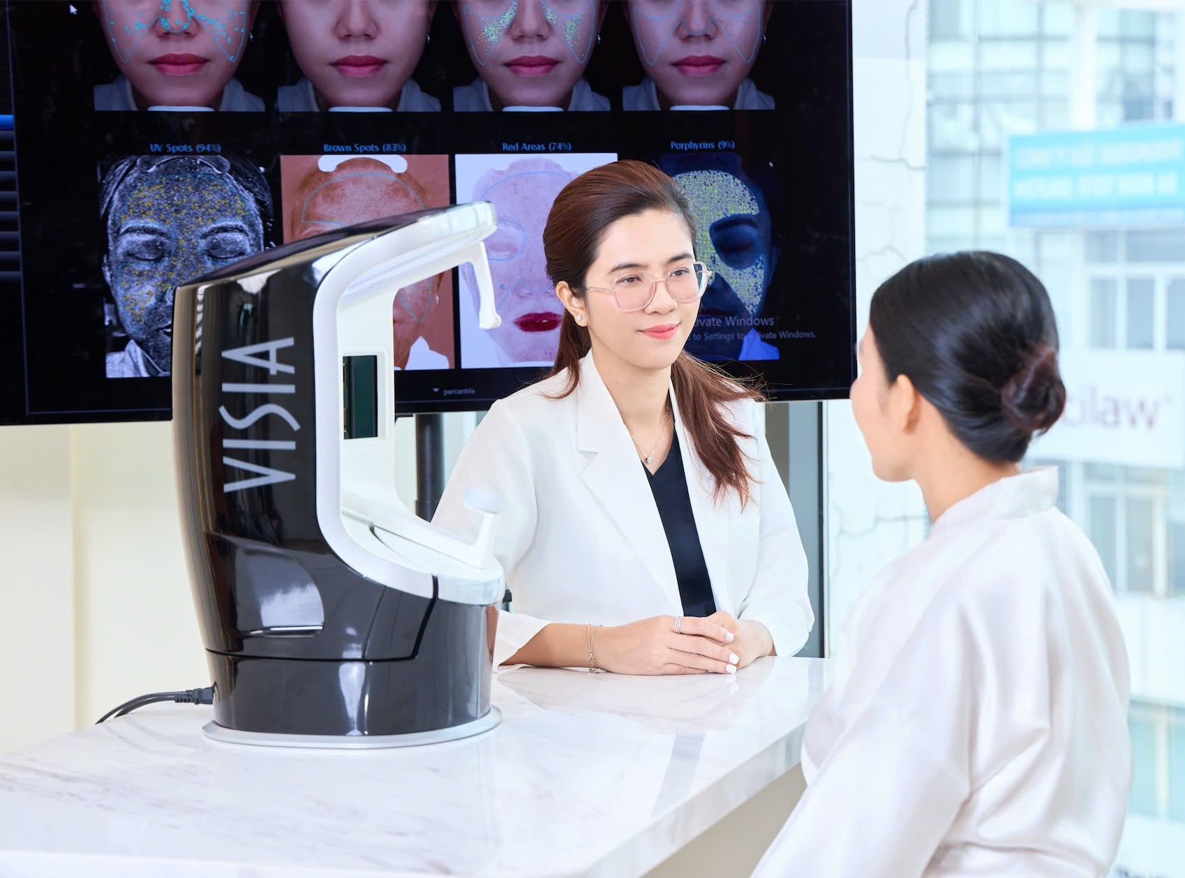 Doctor Ngoc Hanh examines and diagnoses a client's skin. Photo: Linh Anh Premium Aesthetics |