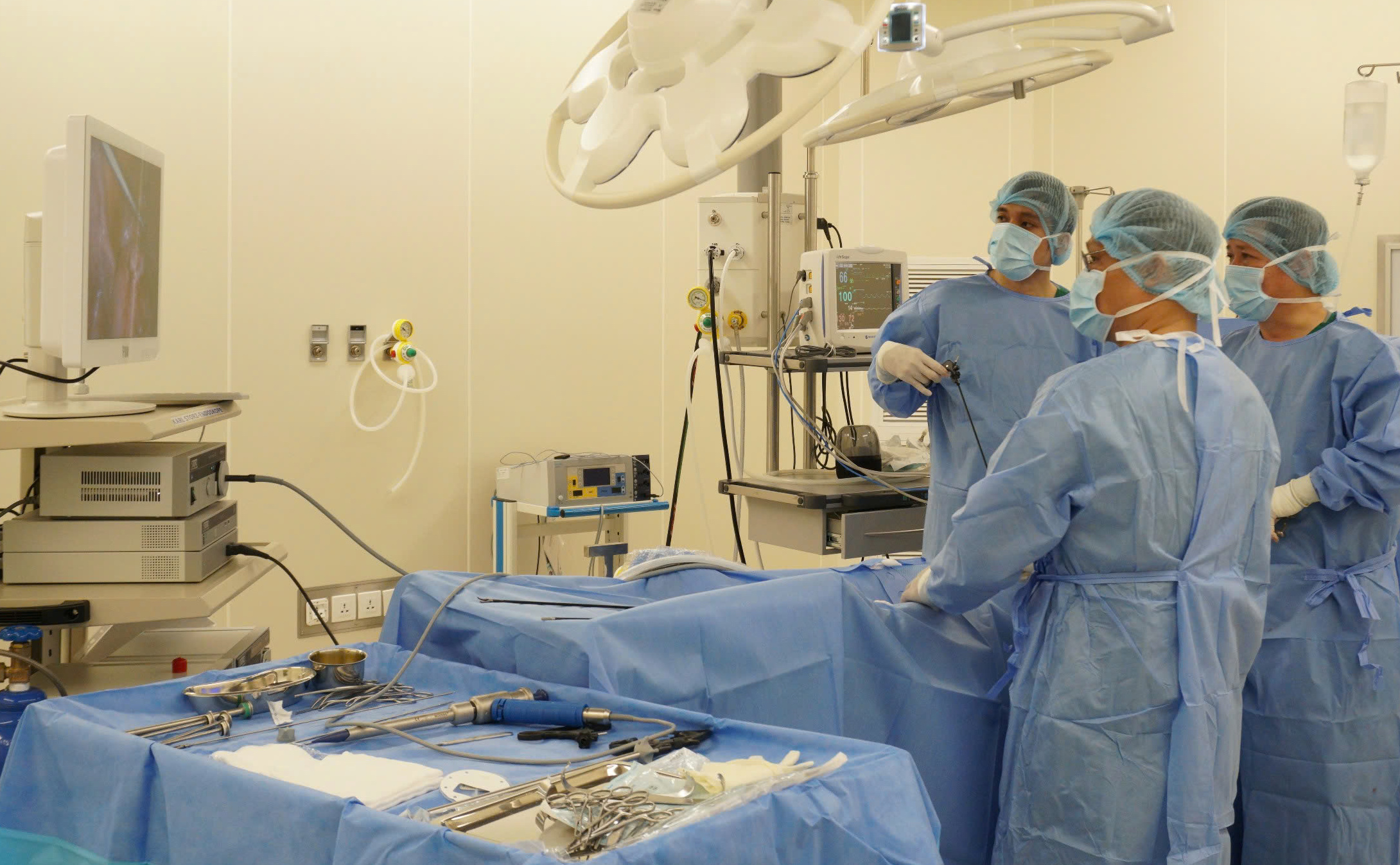 Doctors perform laparoscopic surgery on the patient. Photo: Hospital provided