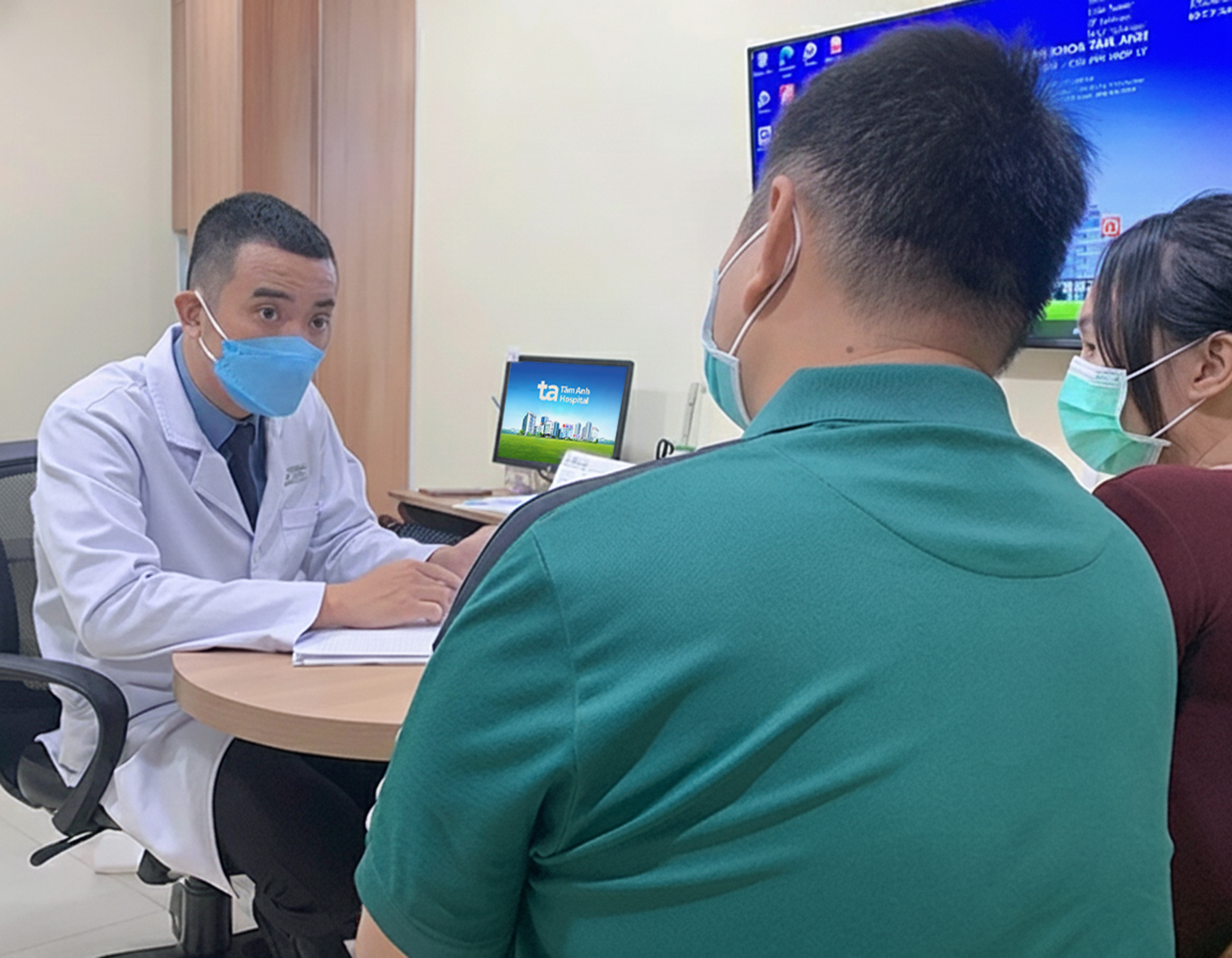 Doctor Tung consults with Cong and his wife on a weight loss regimen. Photo: Tam Anh General Hospital |
