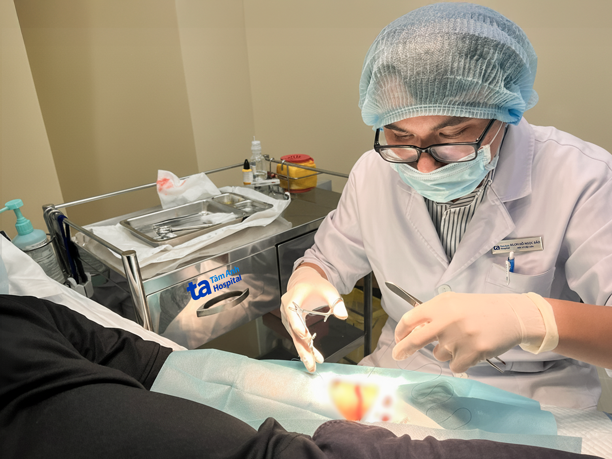 On november 28, doctor of first degree specialization Ho Ngoc Bao, from the emergency department at Tam Anh District 7 General Clinic, examined the patient. He noted two lacerations, 7 cm and 5 cm long, on the front of the patient's left forearm, with bleeding and detached soft tissue. On the back of the forearm, there were two lacerations exposing tendons, along with bruised tissue and oozing blood. The hand also showed multiple scratches and swelling.