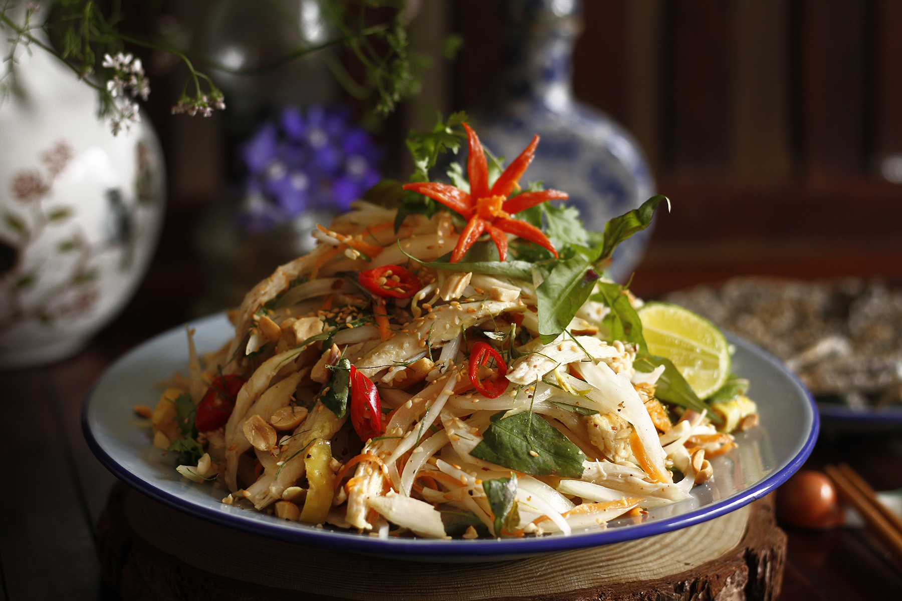 Chicken salad with bell peppers and onions provides protein and fiber for the body. Photo: Bui Thuy
