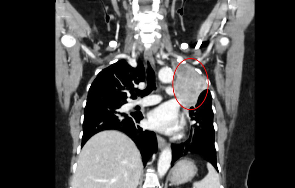 Doctor Nguyen Tran Anh Thu, from the Oncology Department, Oncology Center, stated that brain tumors can cause symptoms similar to a stroke, leading to patient confusion. These tumors are highly likely to be metastatic cancer. The doctor ordered a CT scan of the upper lobe of the left lung, which showed a lesion over 7 cm with irregular borders, causing surrounding lung collapse.