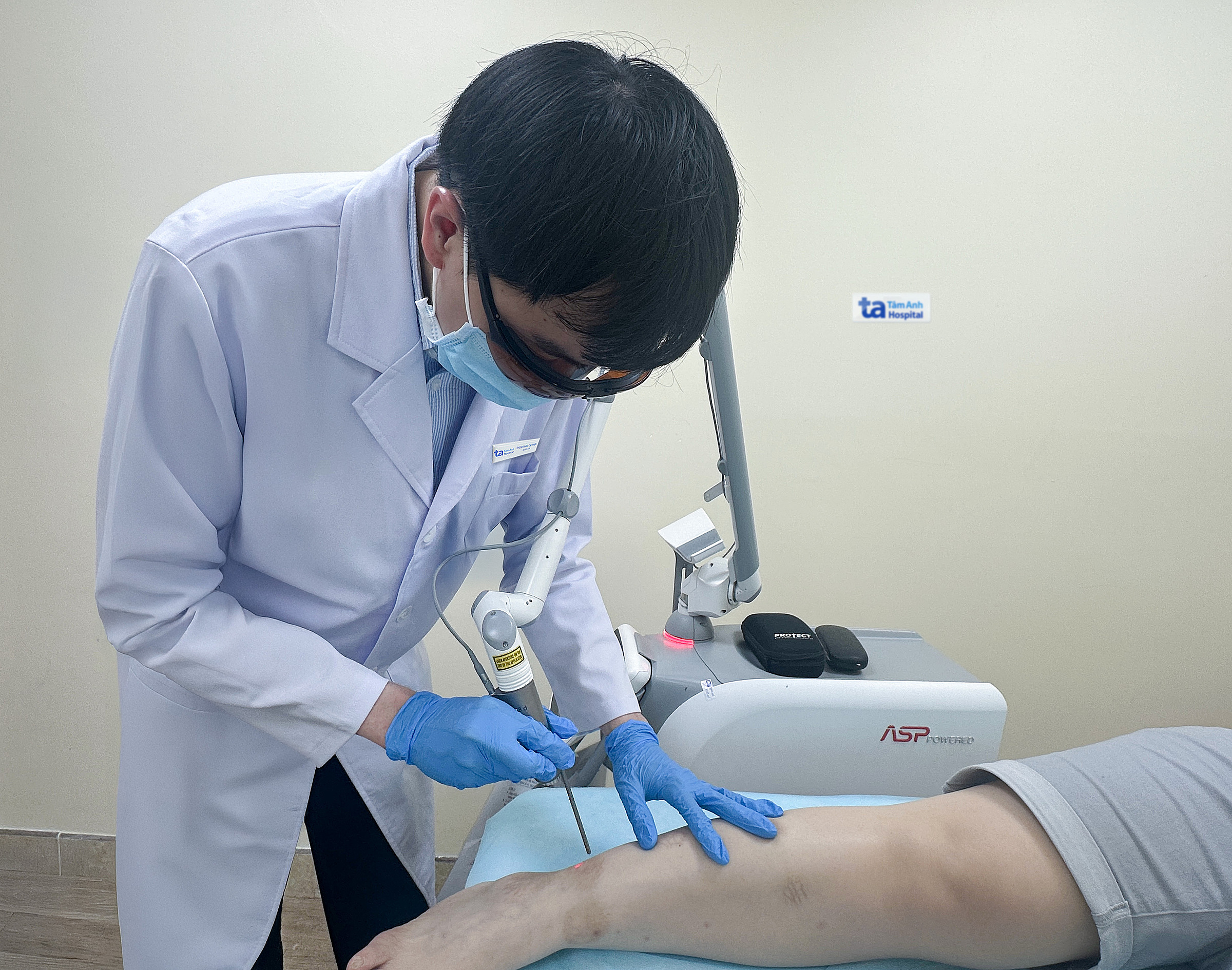 Mien receives pico laser treatment for hyperpigmentation caused by the fungal infection. Photo: Tam Anh General Hospital |