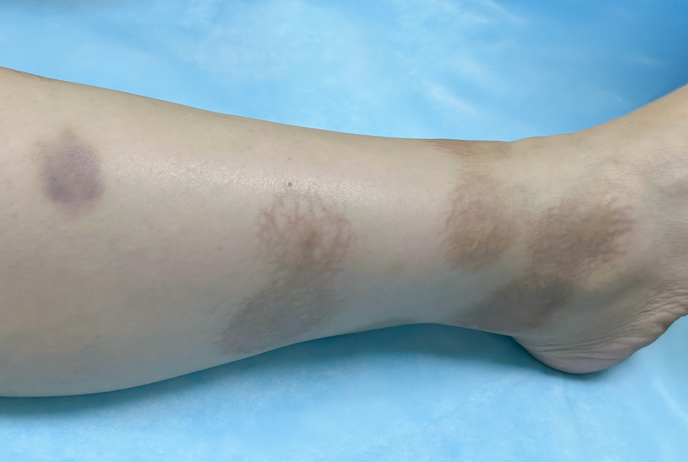 Mien initially noticed a small, itchy red rash on her left shin and applied anti-itch cream. Over the next few months, the rash spread, developing into larger coin-sized spots on both her arms and legs, accompanied by itching, flaking, and a burning sensation.