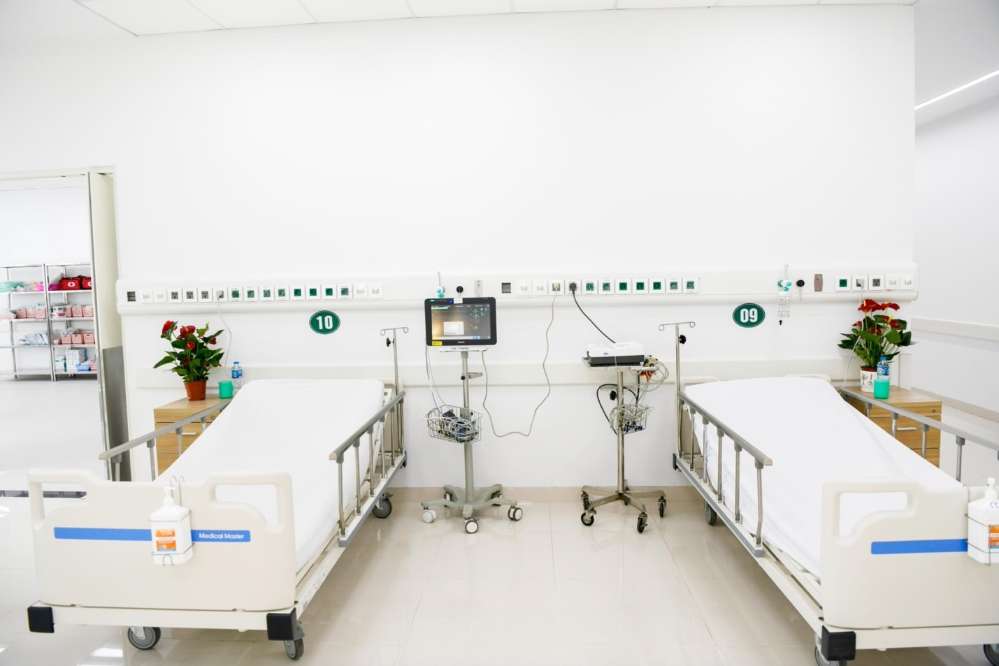 Clean hospital beds with friendly green plant decorations. *Photo: Nhu Y*