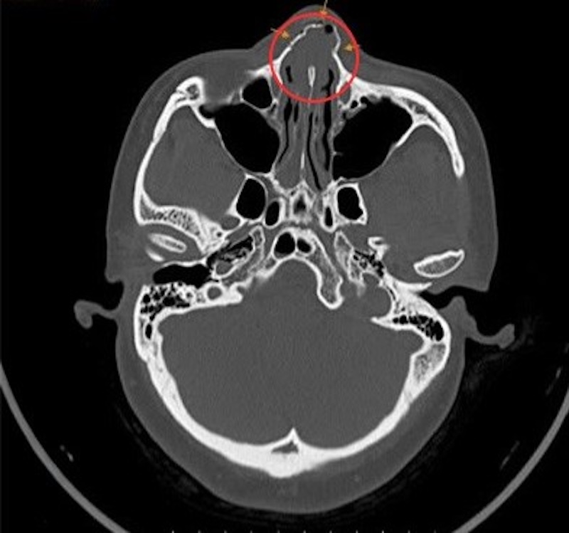 CT scan results showed nasal pyramid displacement and comminuted nasal bone fractures. Photo: Tam Anh General Hospital |