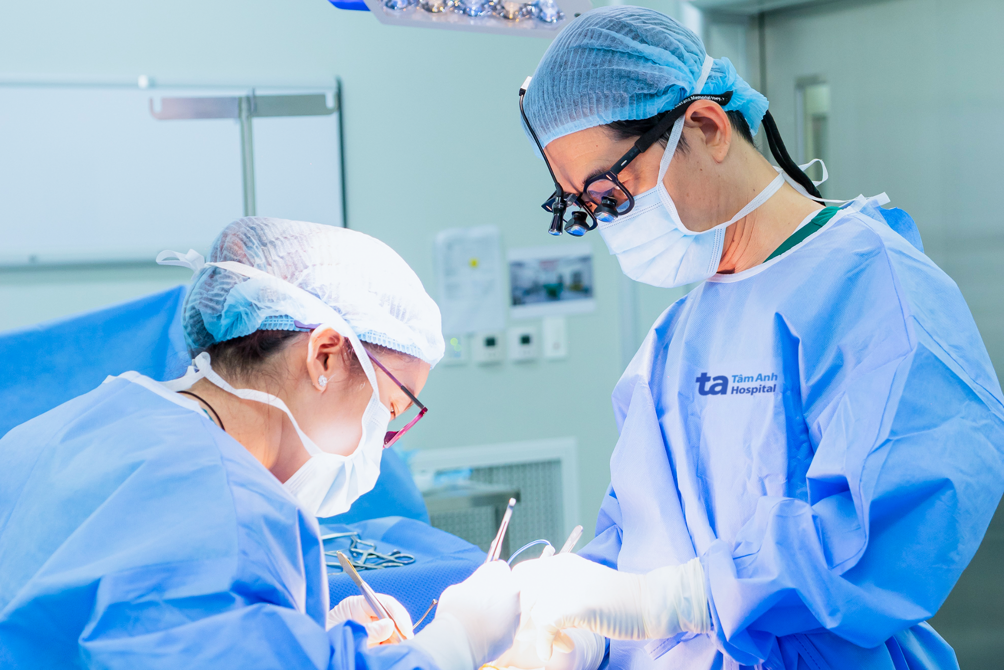 Dr. Dung (right) and the surgical team operating on the patient. Photo illustration: Thanh Luan |
