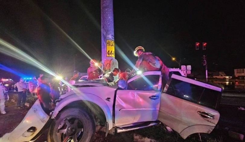 Around 12:50 a.m. on 6/9, a white Mitsubishi SUV crashed into a power pole on the median strip of Highway 347 in Ayutthaya Province, central Thailand, Khaosod reported. The impact destroyed the entire right side of the vehicle, trapping the 42-year-old driver inside. Rescue crews used hydraulic cutters to free him.