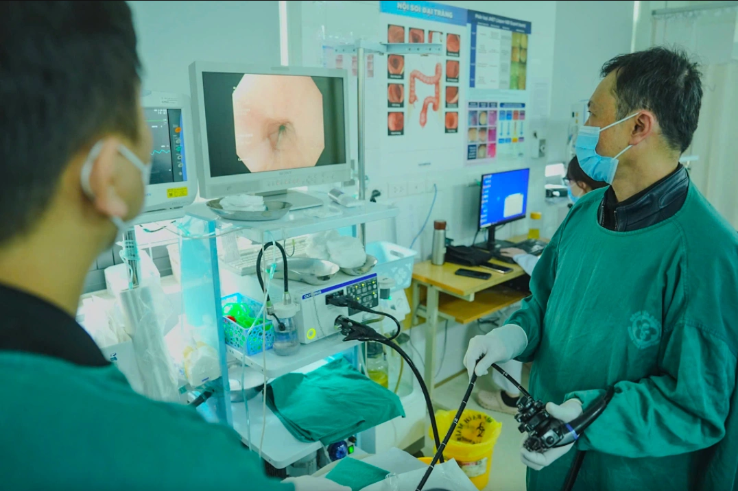 Doctors at Bach Mai Hospital use AI in gastrointestinal endoscopy for early cancer detection. *Photo: The Anh* |