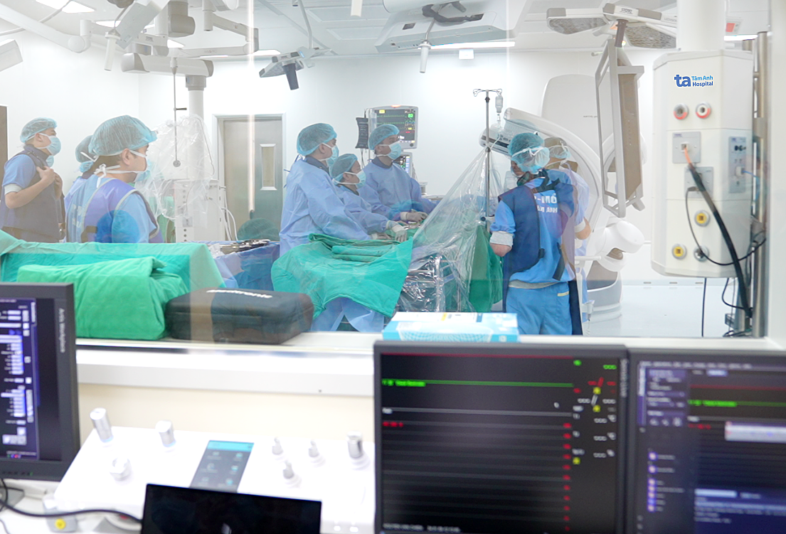 The team placed an intra-aortic balloon pump to support circulation and a stent to restore coronary blood flow for the patient. *Photo: Tam Anh General Hospital*