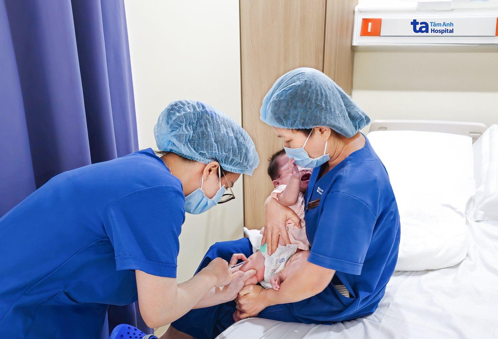 A newborn receives a monoclonal antibody injection to prevent RSV. Illustrative photo: Tam Anh General Hospital