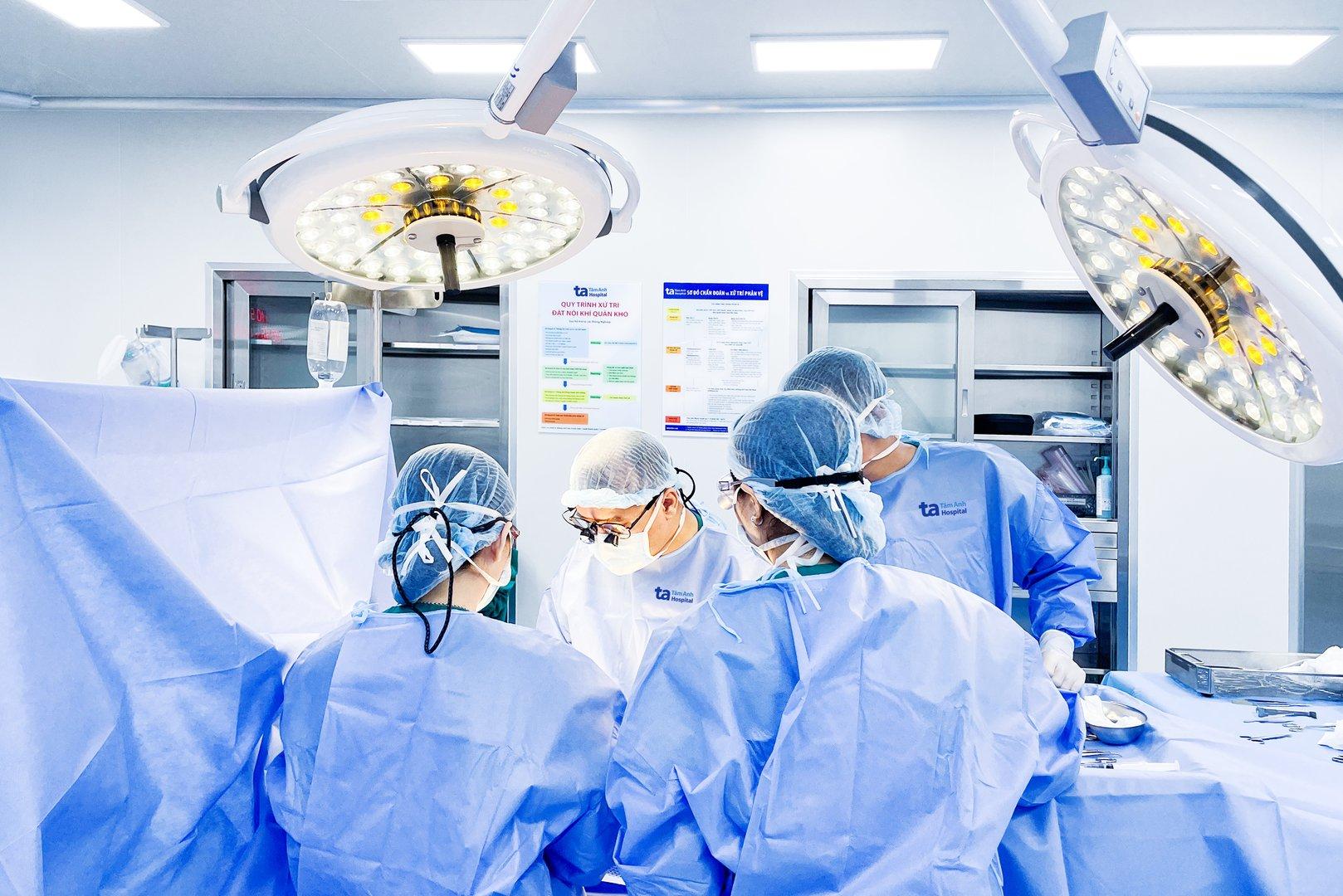 Dr. Trong (center) performing surgery on the patient. Photo: Tam Anh General Hospital |