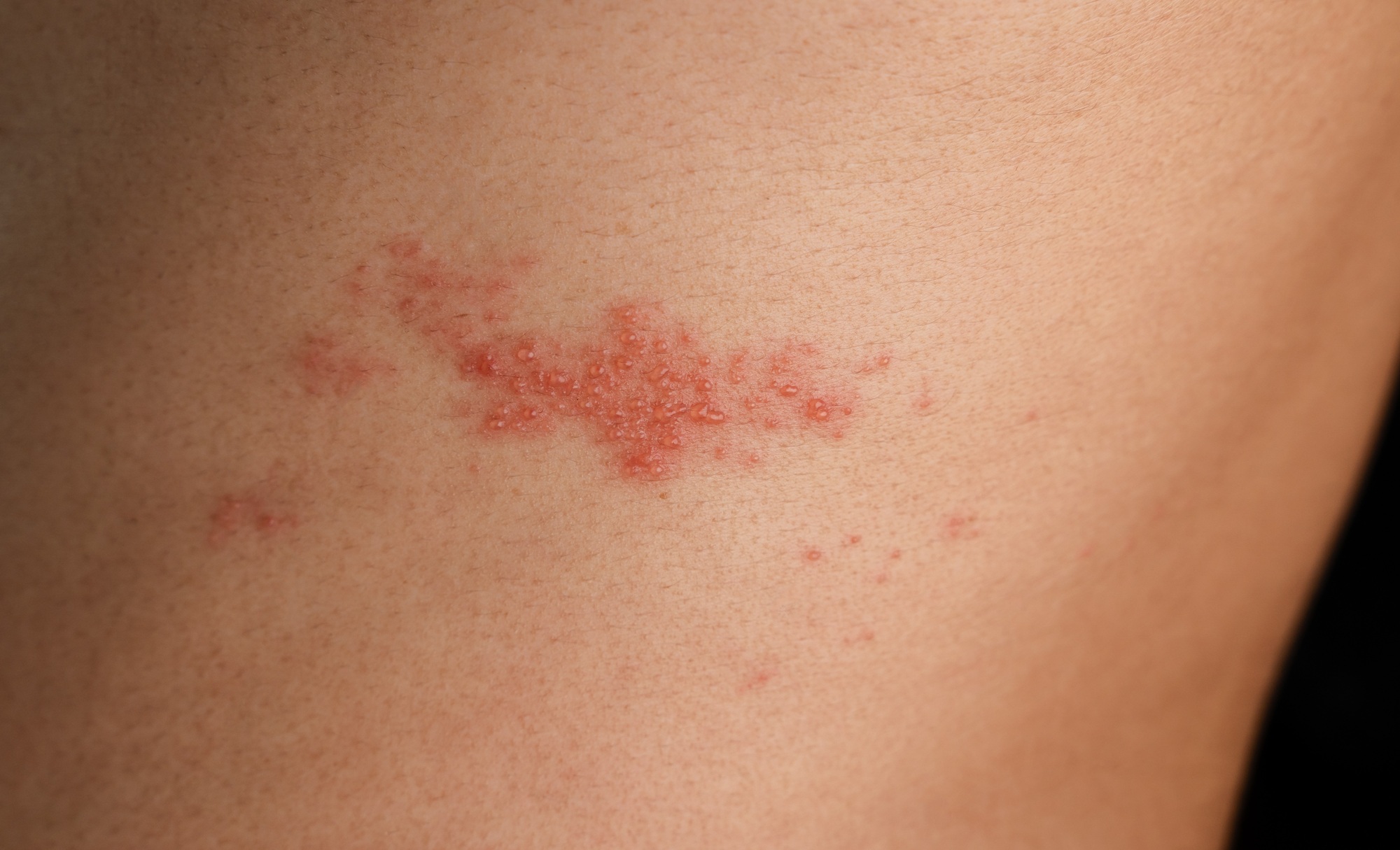 Burst shingles blisters can spread the infection to healthy skin. *Vecteezy*