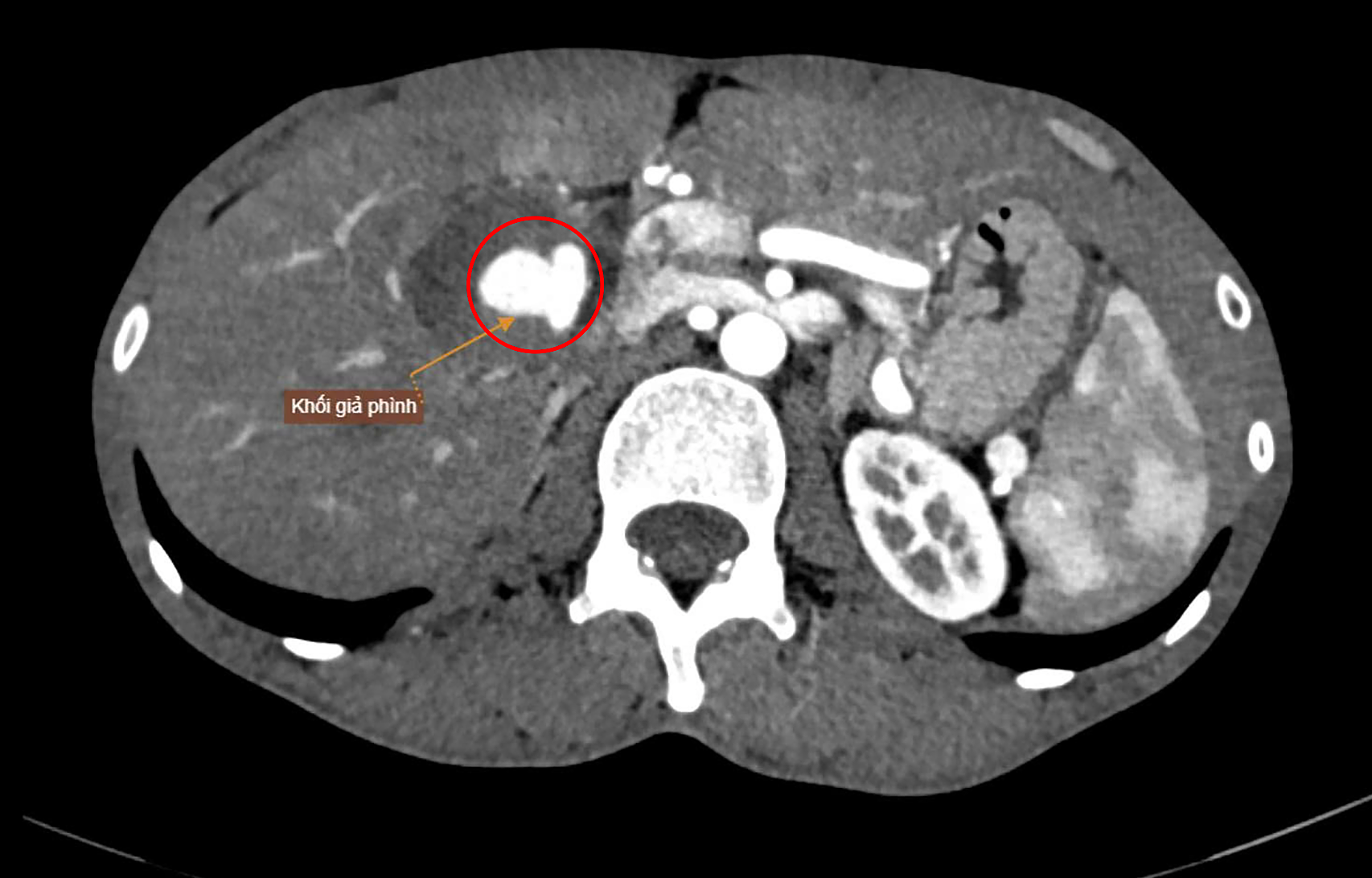 A large pseudoaneurysm with rupture risk shown on a CT scan. *Photo: Tam Anh General Hospital* |
