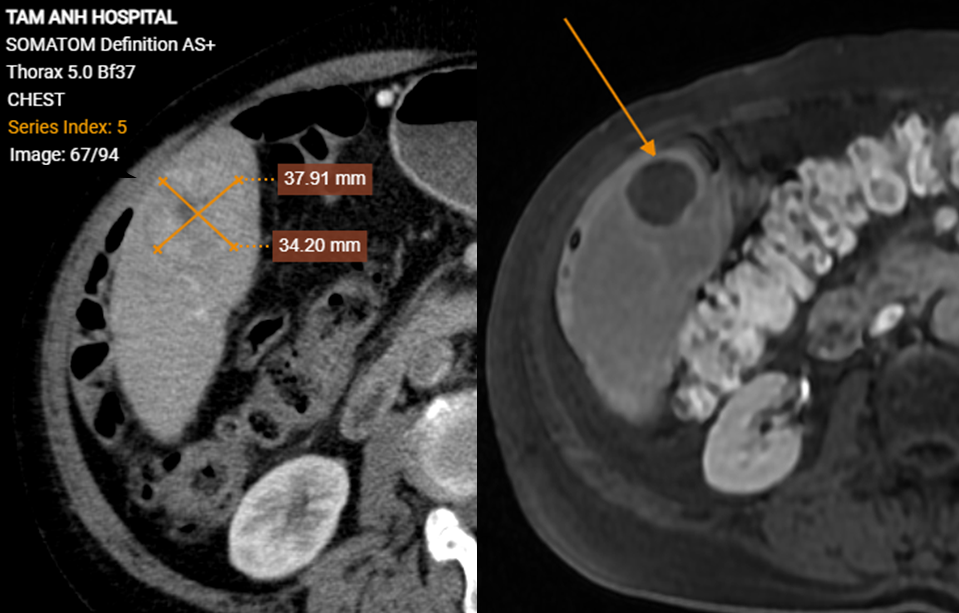 A follow-up MRI three months later showed a significant reduction in the size of both liver tumors. They no longer absorbed contrast, indicating that the cancer cells had necrotized. According to Dr. Hien, Mr. Phong's overall health improved, he gained weight, and his AFP level returned to a normal range of 6,5 ng/ml, signifying a complete response to the treatment.
