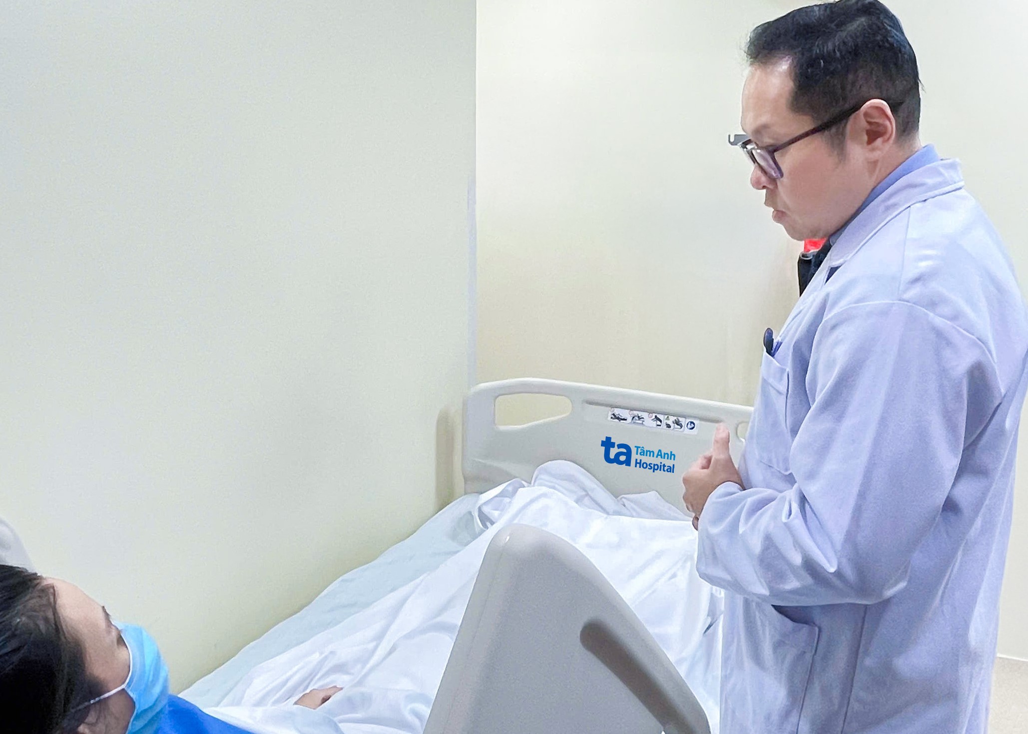 Doctor Nguyen Hoang Duc checks on Han's health after surgery. Photo: *Tam Anh General Hospital*.