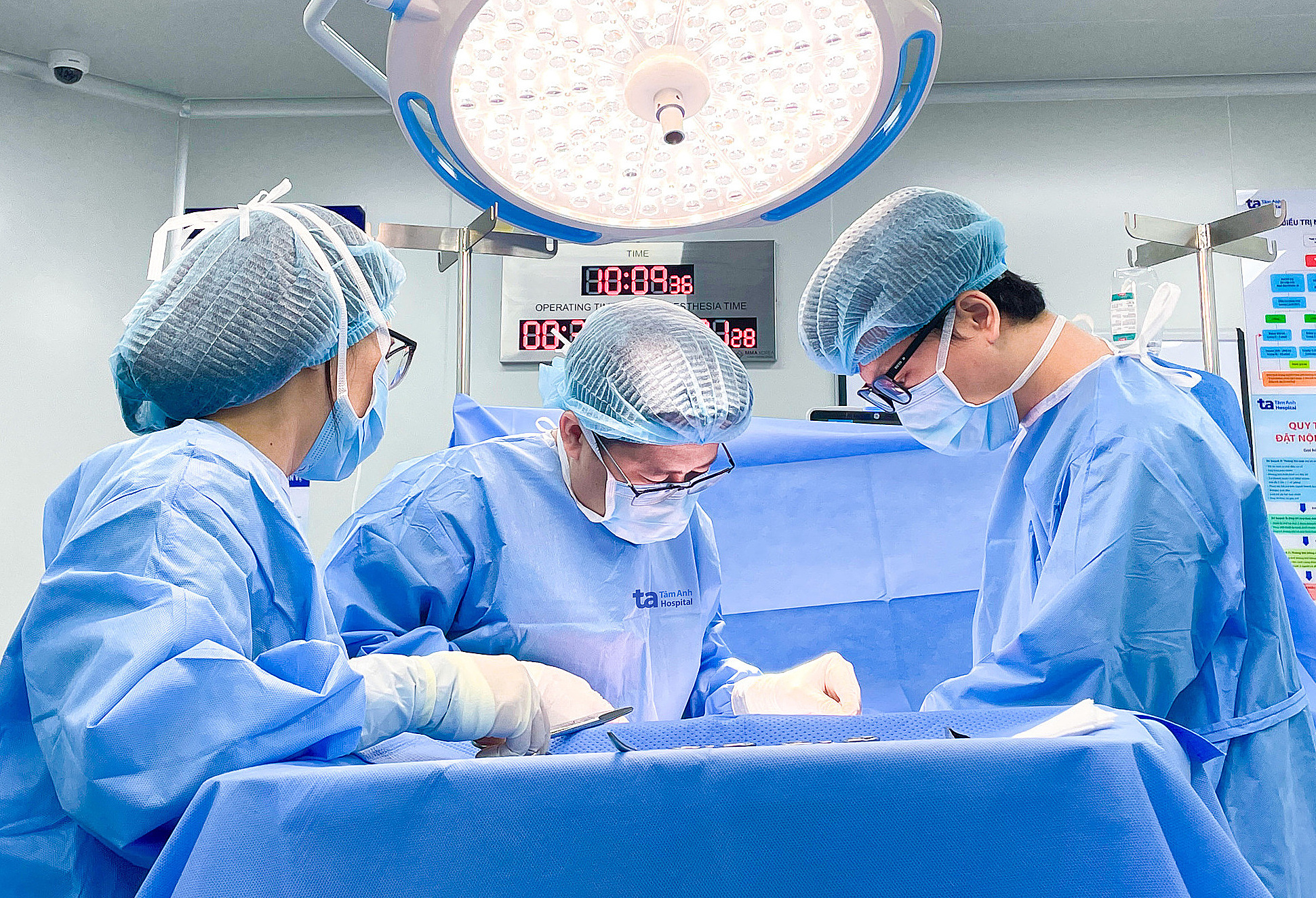 Dr. Huy and his surgical team performed an operation to dissect and return the herniated mass to the abdominal cavity. They then closed the processus vaginalis and reinforced the inguinal wall. Tuan was discharged the same day and resumed normal activities.