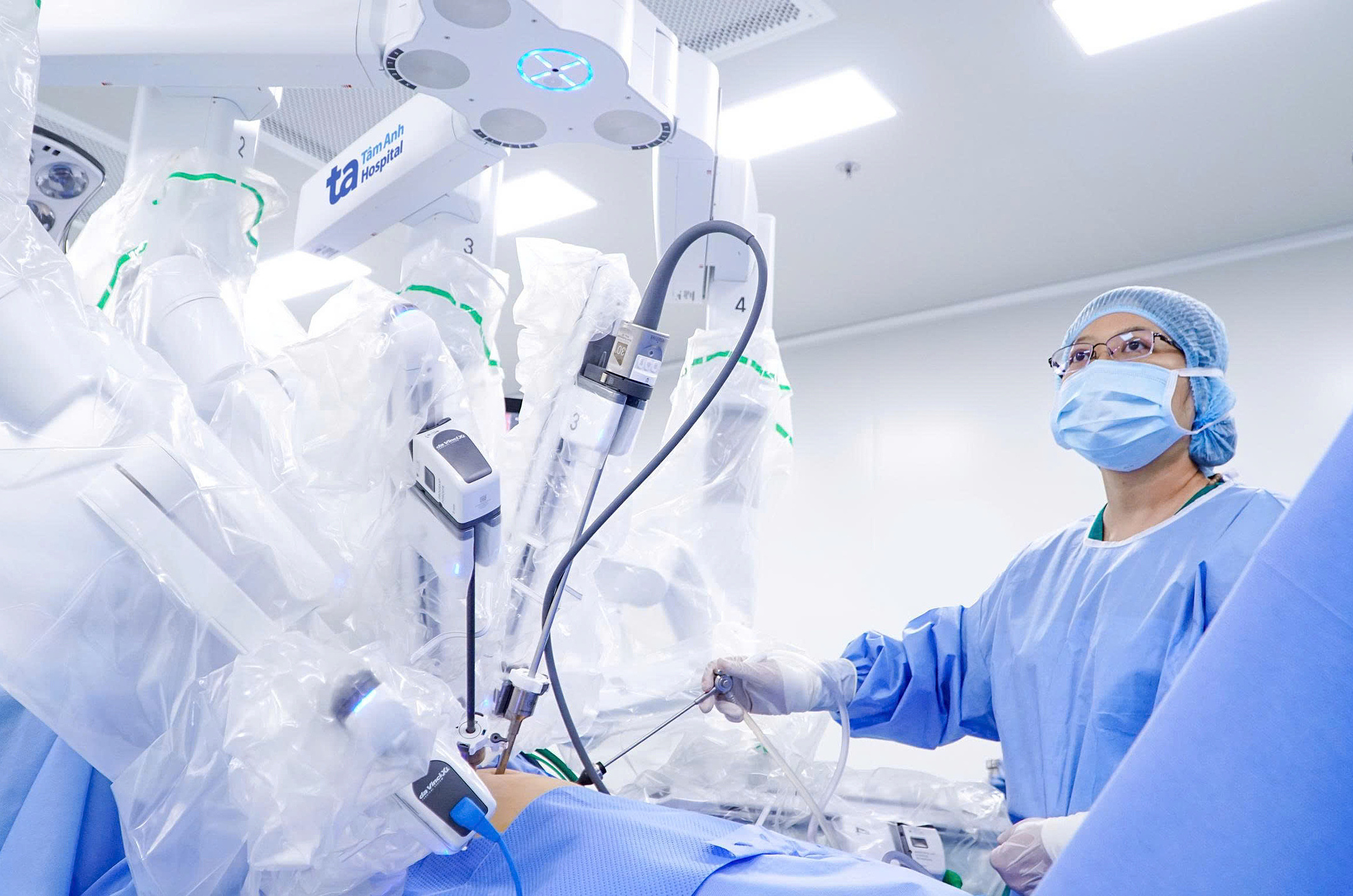 Doctor Nguyen Ba My Nhi, Director of the Department of Obstetrics and Gynecology, highlighted the precision of robot-assisted surgery. The robot provides 3D magnification 15 times greater than conventional methods, minimizes hand tremors, and significantly reduces the risk of damaging the ureters and blood vessels in the narrow pelvic region. Doctors successfully removed the bilateral adnexa containing the tumors, preserving vital surrounding structures, and observed no post-operative complications. The 8 mm incision resulted in less pain, allowing the elderly patient to recover much faster compared to open surgery.