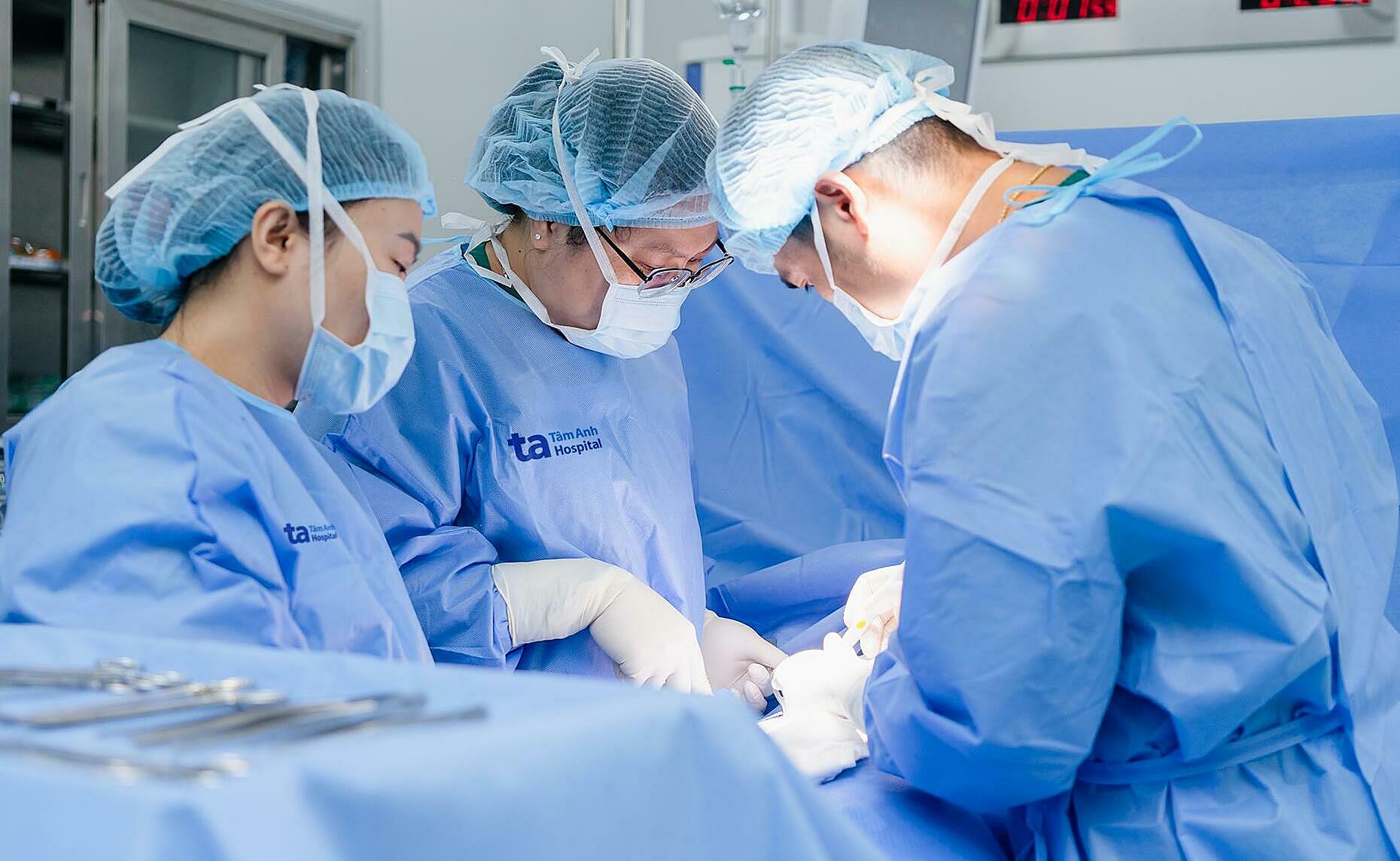 Doctor The Thi (far right) and the surgical team operating on the Russian tourist's ovarian tumor. Photo: Tam Anh General Hospital |