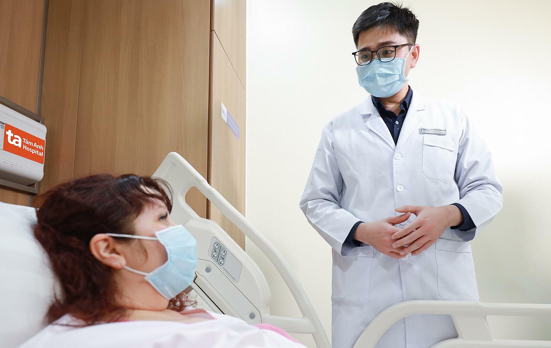 Master, Doctor Nguyen Minh Thuan, Obstetrics and Gynecology Center, consulting the female tourist after surgery. Photo: Tam Anh General Hospital |