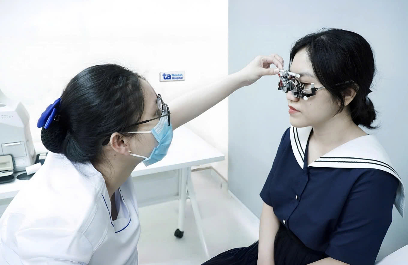 A healthcare worker checks a patient's vision. Illustration: Tam Anh General Hospital |