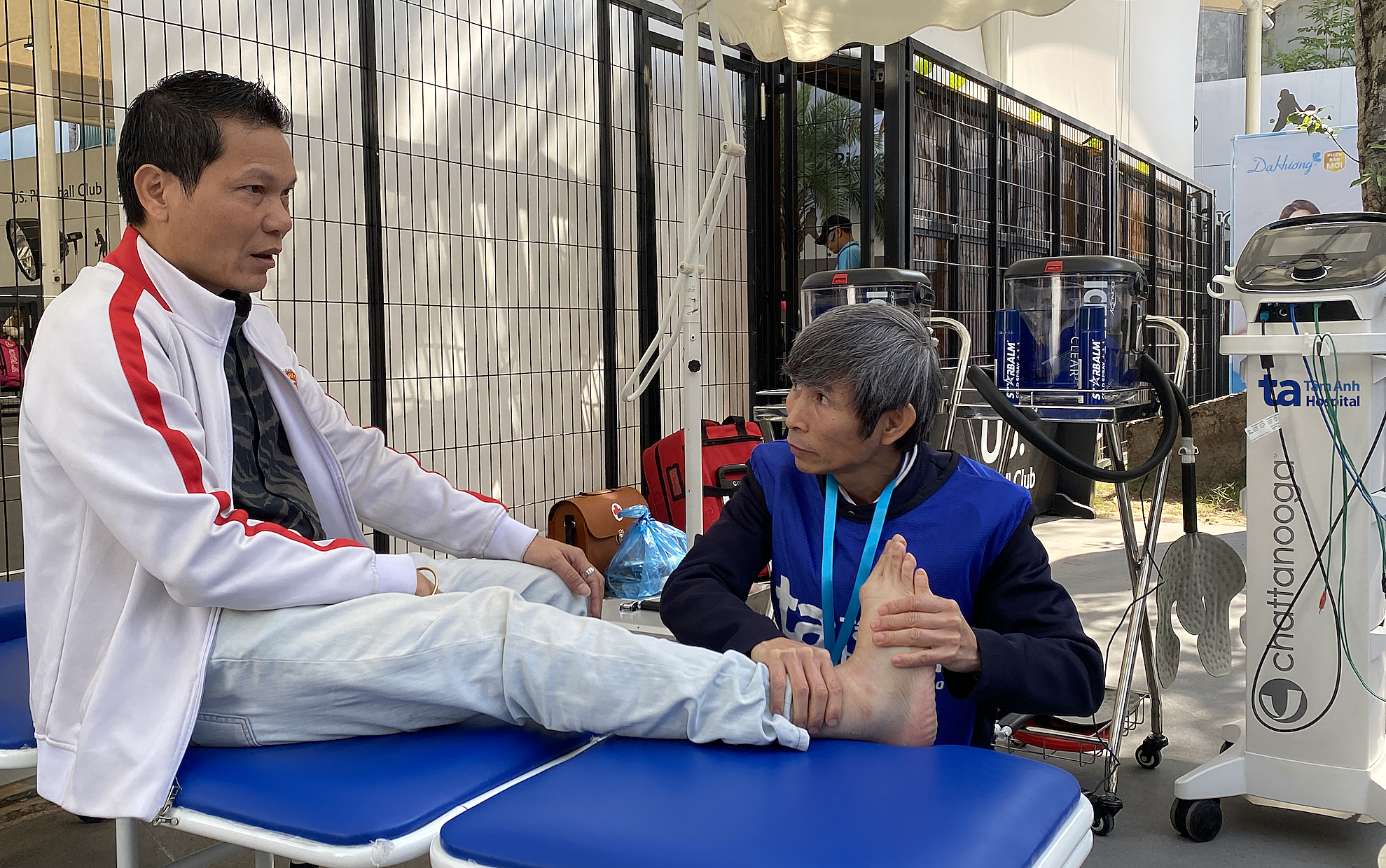 Master Dan examining an athlete with a sprain. Photo: Tam Anh General Hospital |