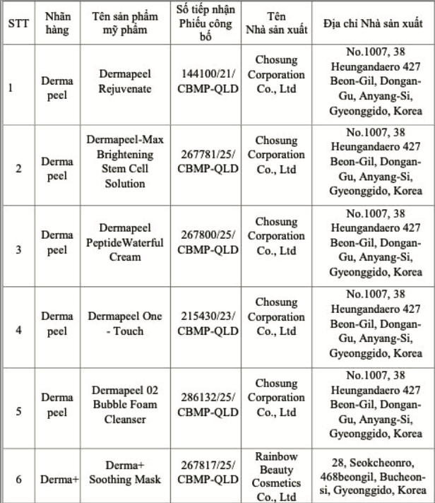 Following this violation, the Drug Administration of Vietnam ordered an immediate halt to the sale and use of the six cosmetic products. Companies were instructed to return the products to their suppliers and report compliance by 5/3.