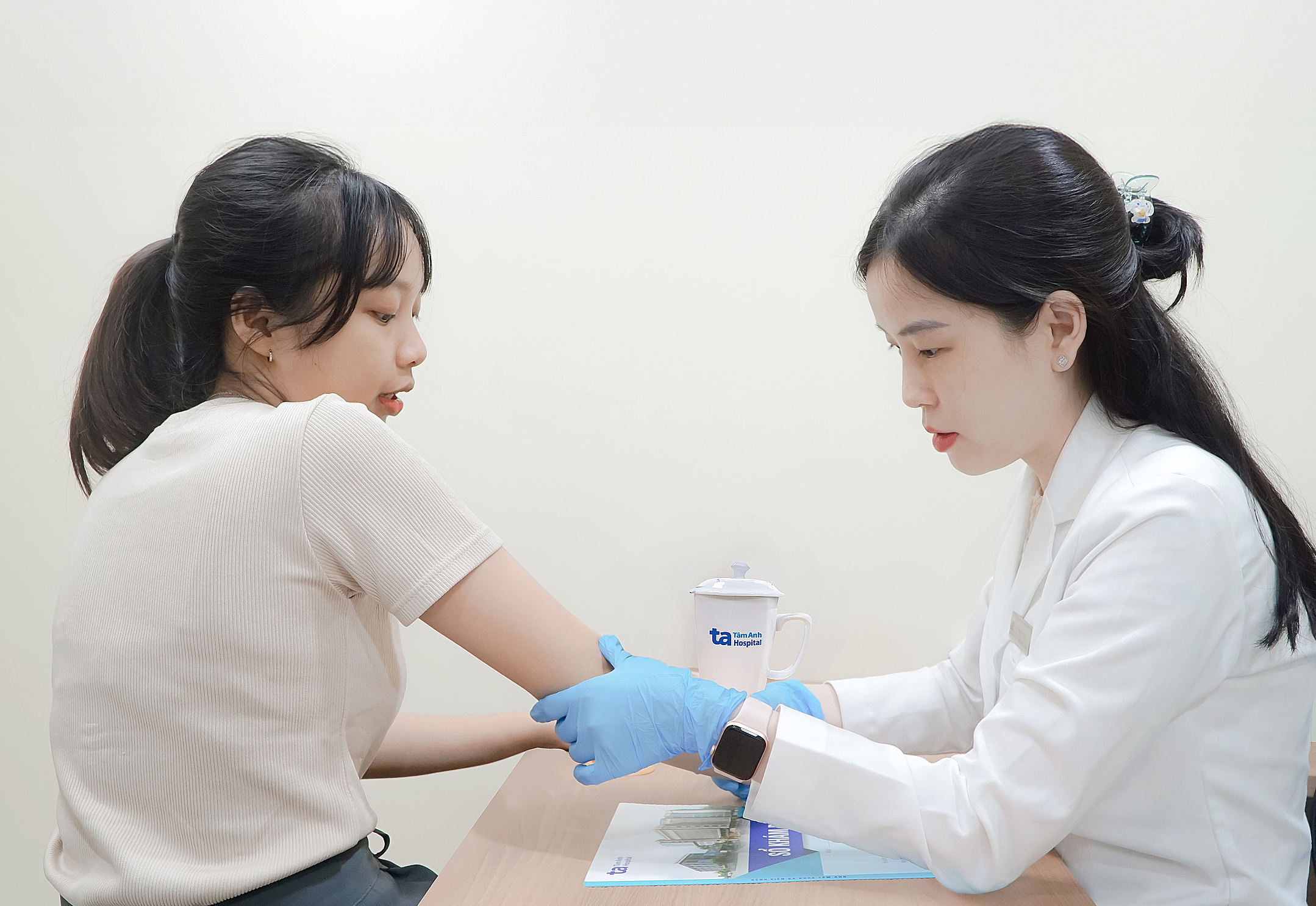Doctor Trang examines a patient's skin. Photo: Tam Anh General Hospital