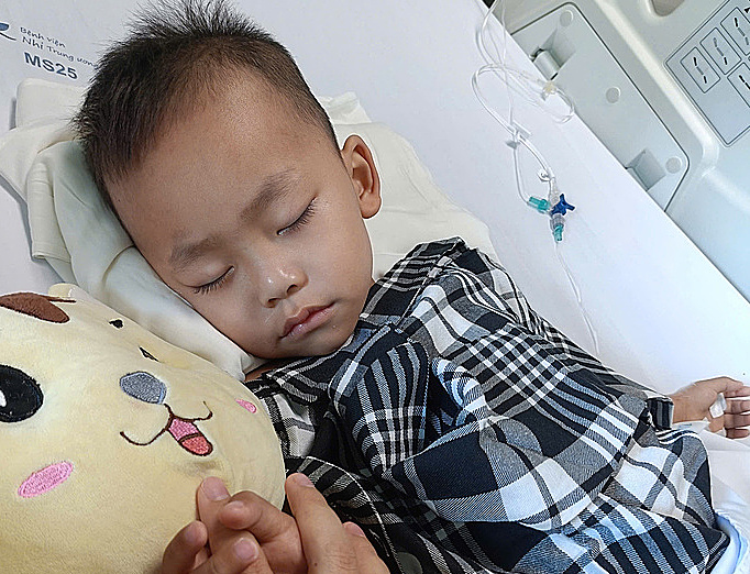 Minh fell ill in 10/2024, suddenly experiencing vomiting followed by a high fever. A doctor at a nearby clinic initially diagnosed food poisoning, but medication did not alleviate his symptoms. Ms. Huyen then took her son to Thanh Hoa Children's Hospital, where scans revealed he had stage 4 neuroblastoma, metastatic to the bone marrow, with a poor prognosis.