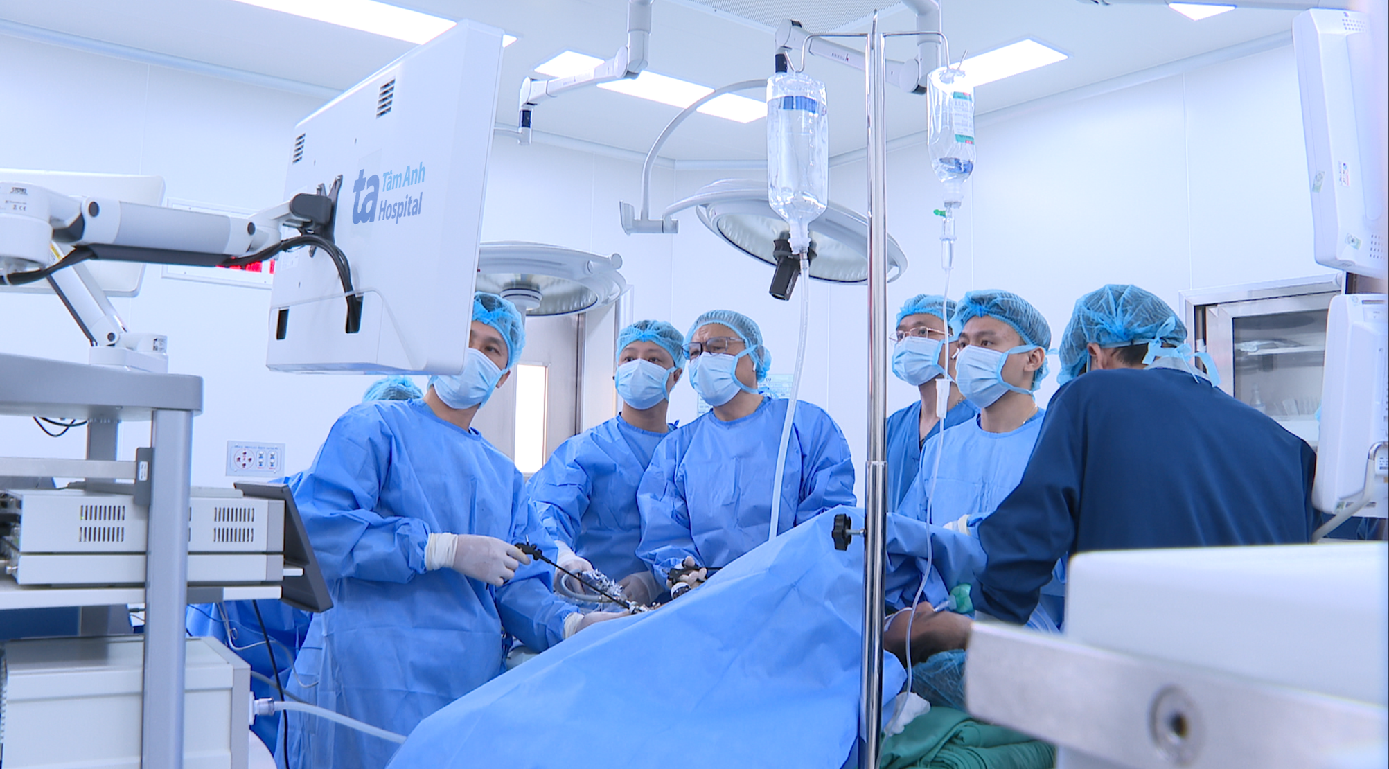 Associate Professor Duong used laparoscopic equipment combined with an ultrasonic scalpel to remove the lower half of the stomach, including a 3x4 cm ulcer, and dissected the surrounding lymph nodes. The team then reconstructed the digestive tract, connecting the remaining portion of the stomach to the small intestine.
