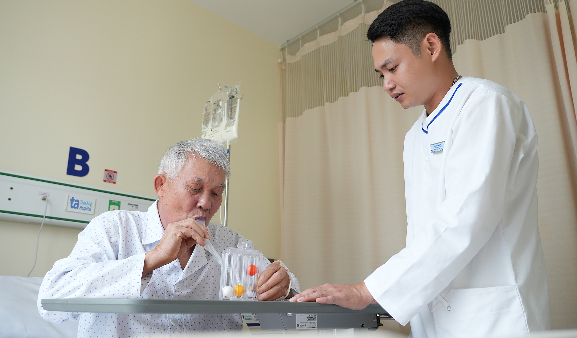 Mr. Chien undergoing post-operative rehabilitation. Photo: *Tam Anh General Hospital* |
