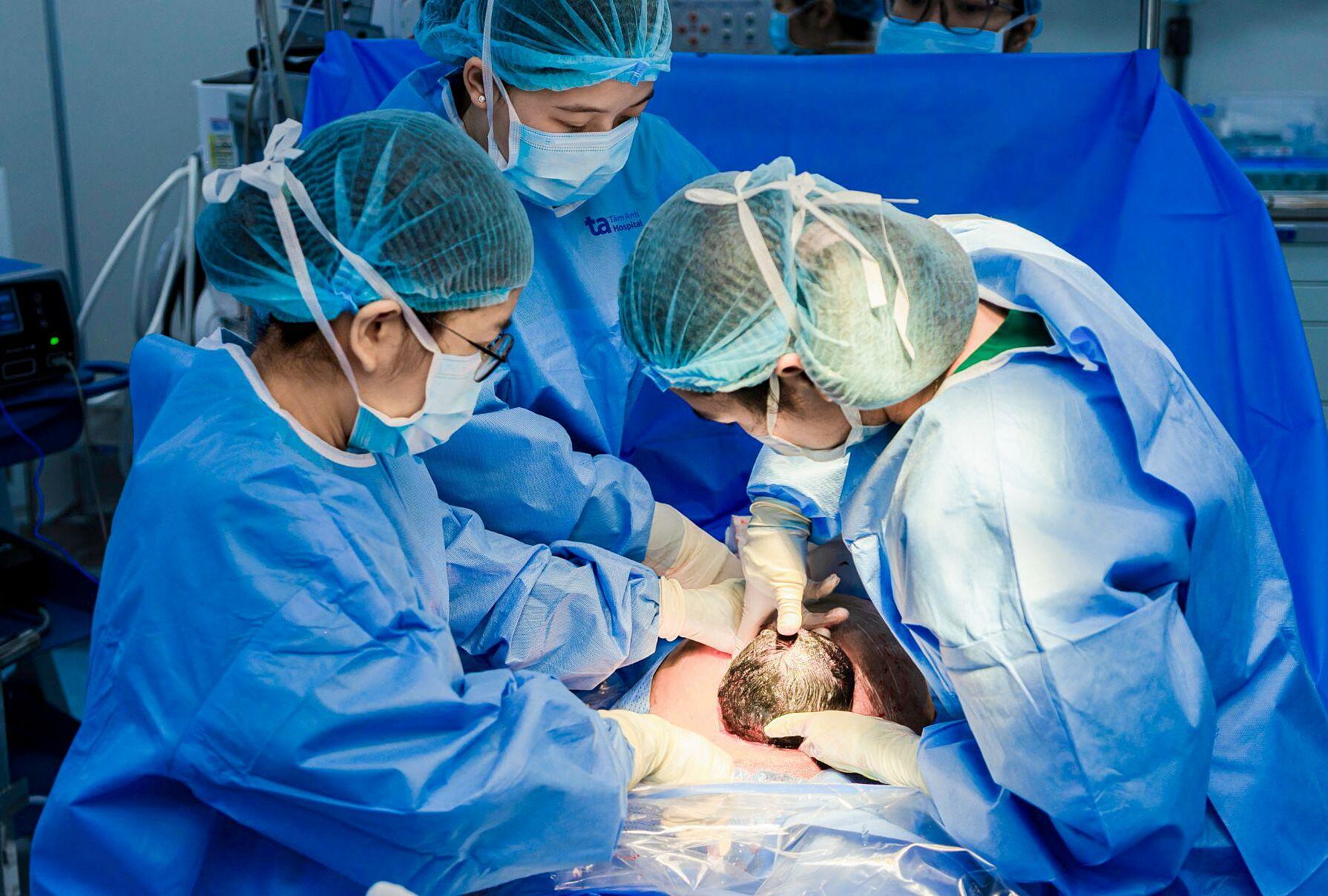 The baby was born via C-section at Tam Anh General Hospital, TP HCM. During the cord cutting, doctors collected about 200 ml of blood from the umbilical cord and placenta, along with a 25 cm segment of cord tissue. These samples were then transferred to the hospital's tissue bank for processing and storage. Stem cells are processed within 24 hours of collection and preserved in liquid nitrogen at -196°C, ensuring their quality for an extended period.