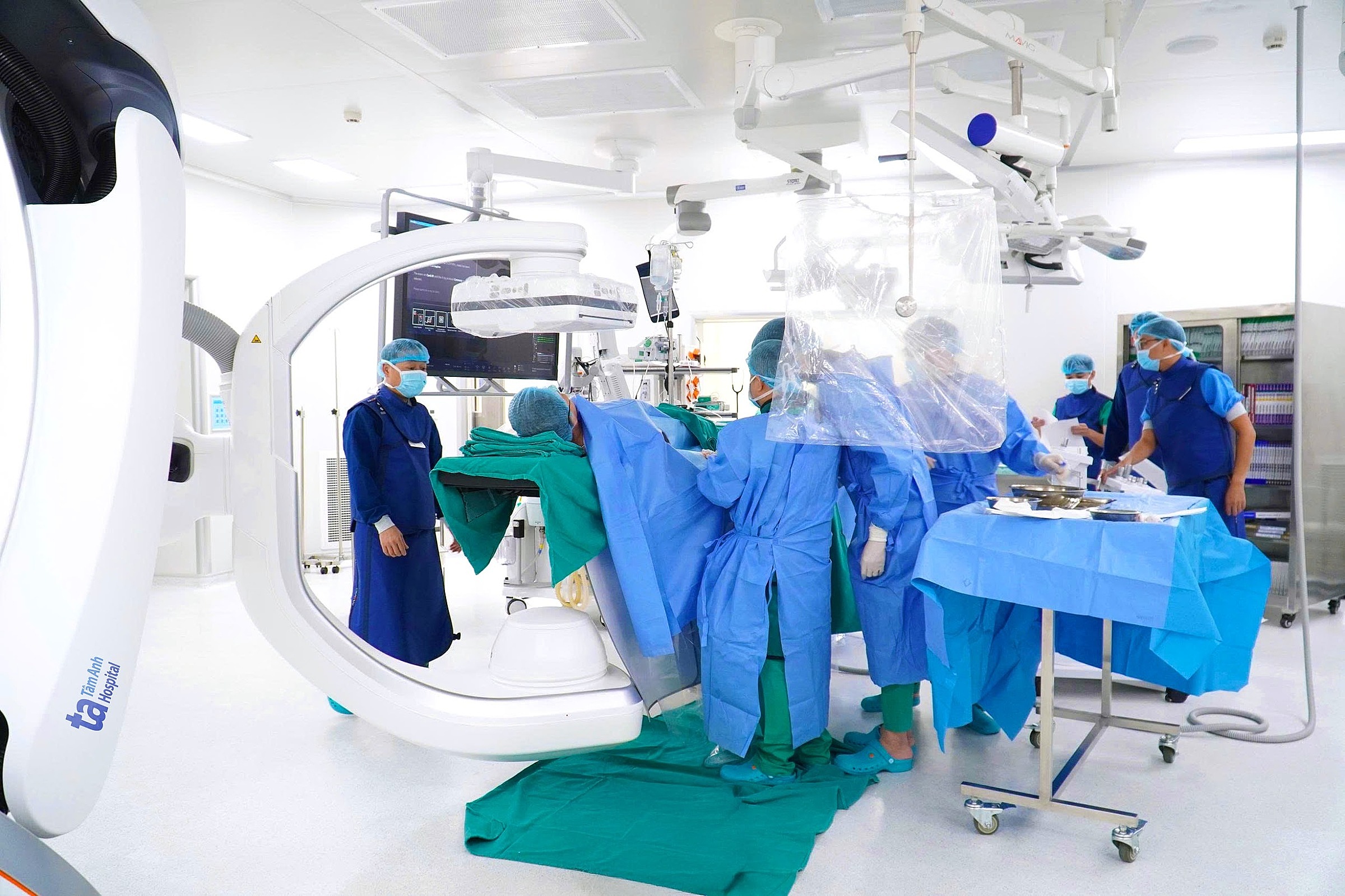 The medical team performs the PFO closure procedure to prevent recurrent strokes. Photo: *Tam Anh General Hospital* |