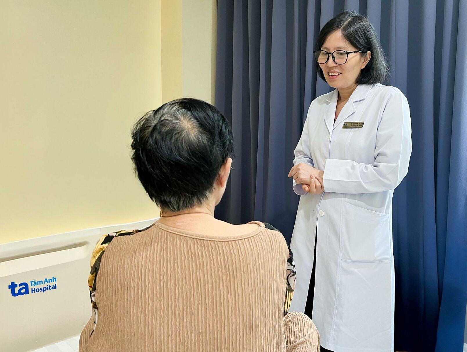 Dr. Binh instructs Mai to adhere to her follow-up appointments after discharge. Photo: Ha Vu |