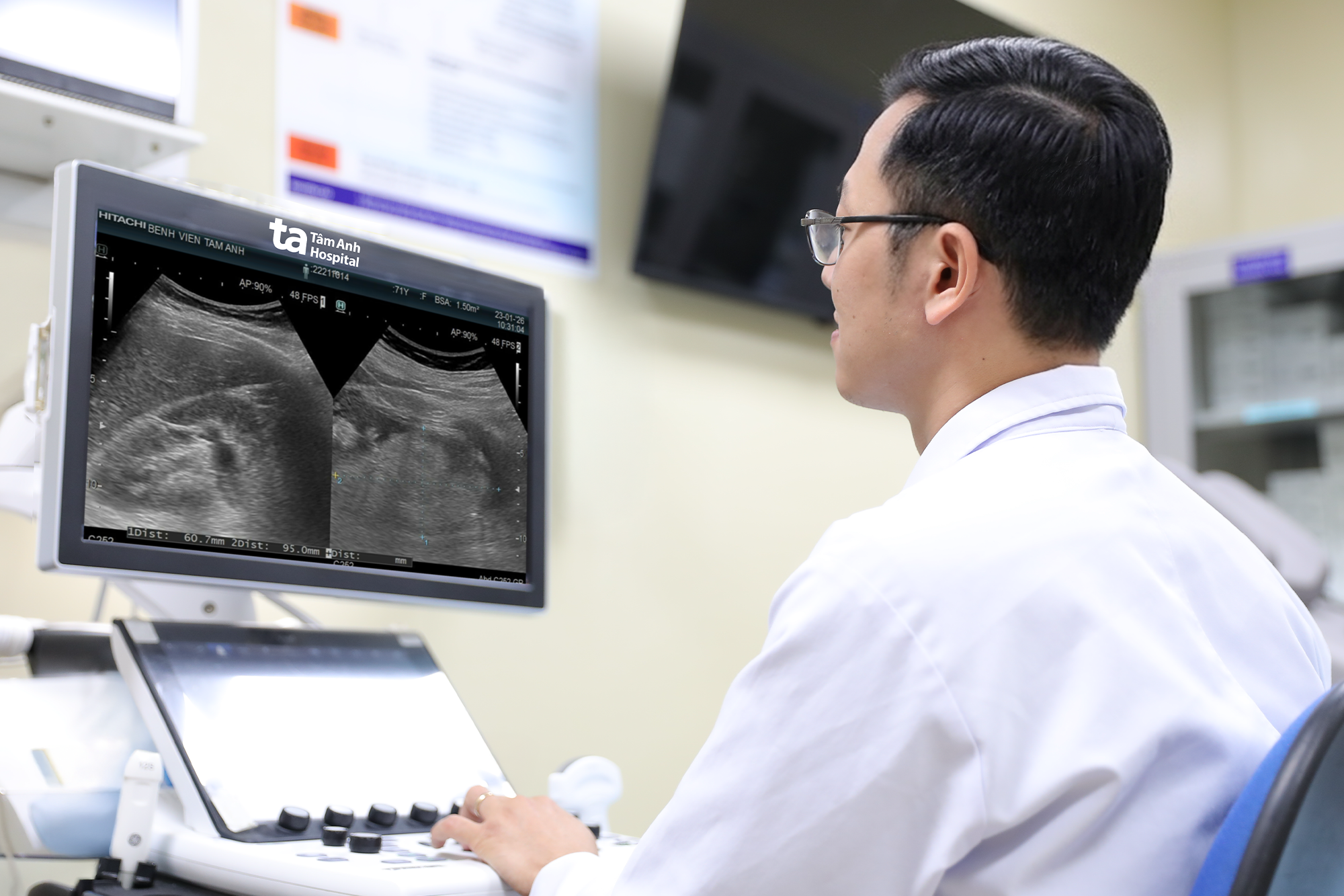 Doctor Tuan performs an echocardiogram for the patient. Photo: Tam Anh General Hospital |
