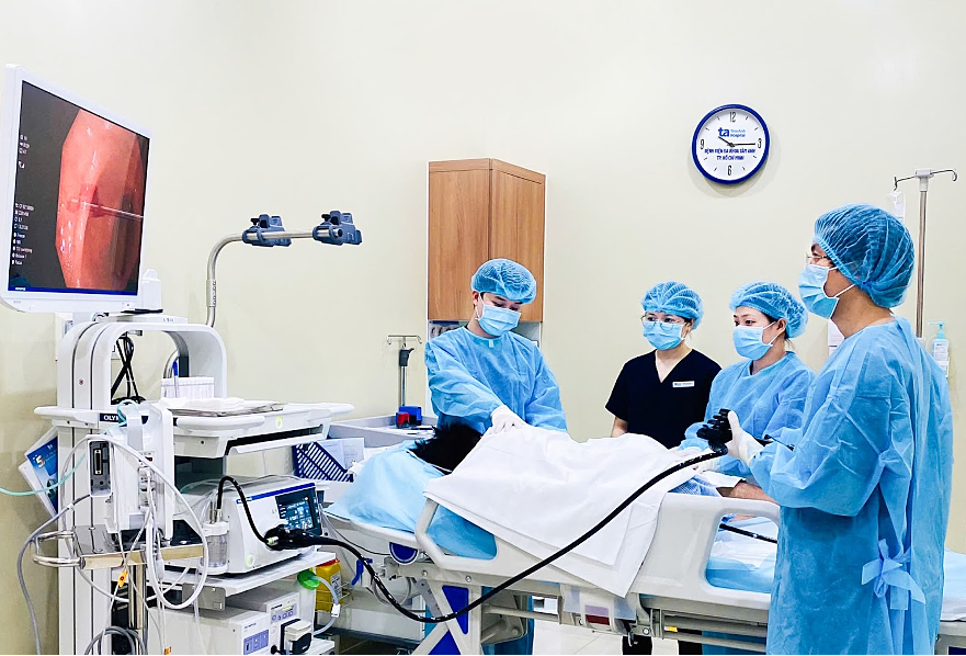 Dr. Tien performing a colonoscopy on Tran. Photo: Tam Anh General Hospital |