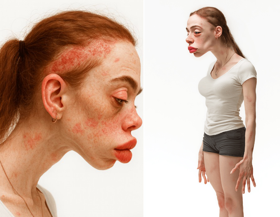 Based on medical research and health data, the team of experts created Ava, a model of a typical influencer in 2050. Ava's appearance has deteriorated, with a hunched back, red eyes, poor skin, and thinning hair due to habits like chasing algorithms, an obsession with beauty standards, and relentless content creation. While representing the face of the future social media star, Ava serves as a warning for the present.