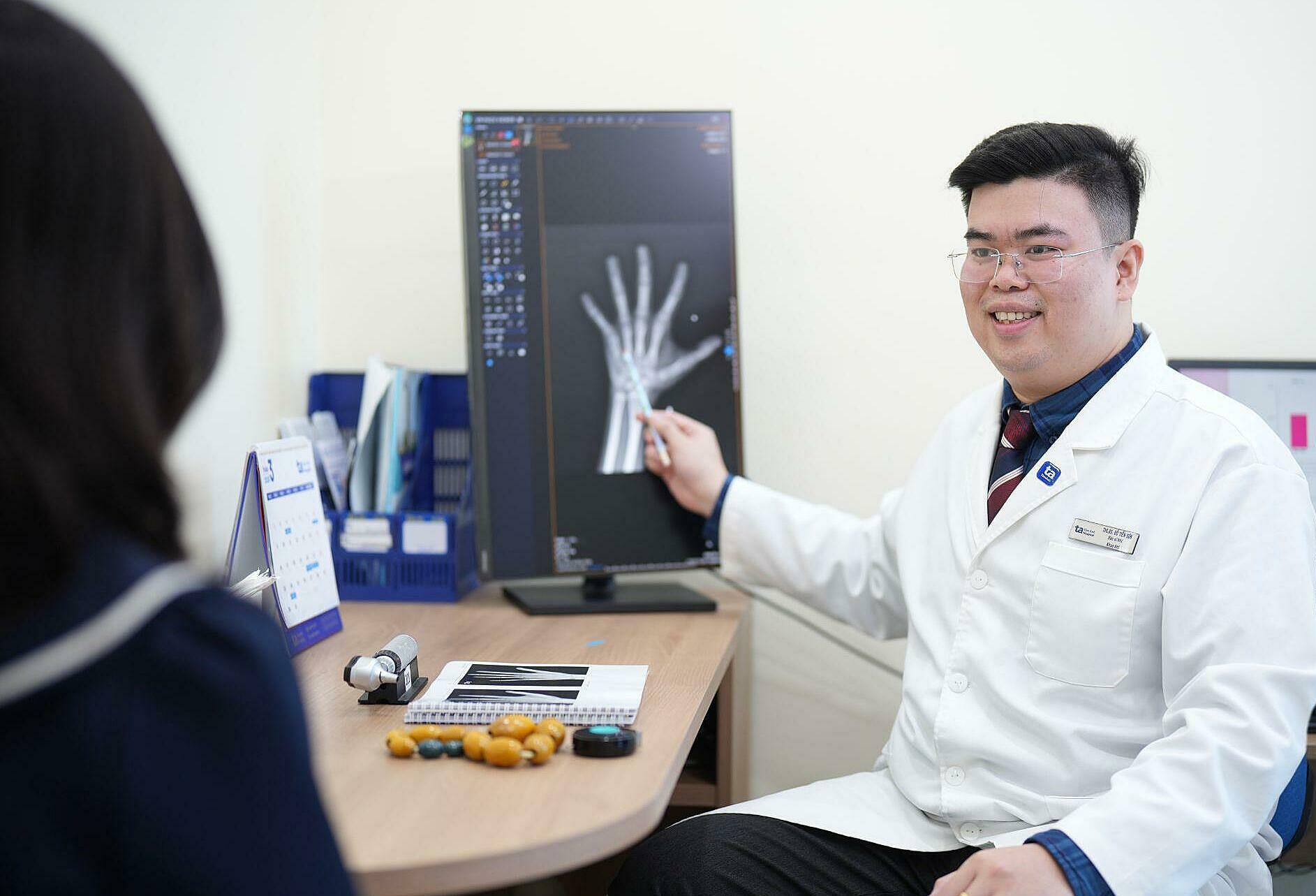 Doctor Son explains a child's bone age to parents. Photo: Tam Anh General Hospital