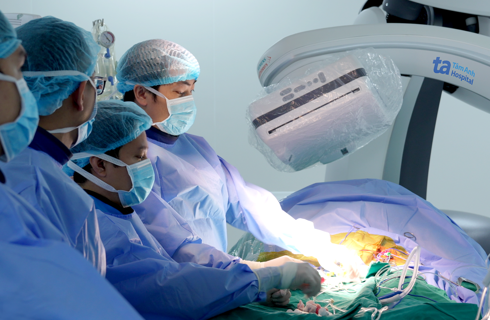 The team performing coronary revascularization for the patient. Photo: Tam Anh General Hospital |