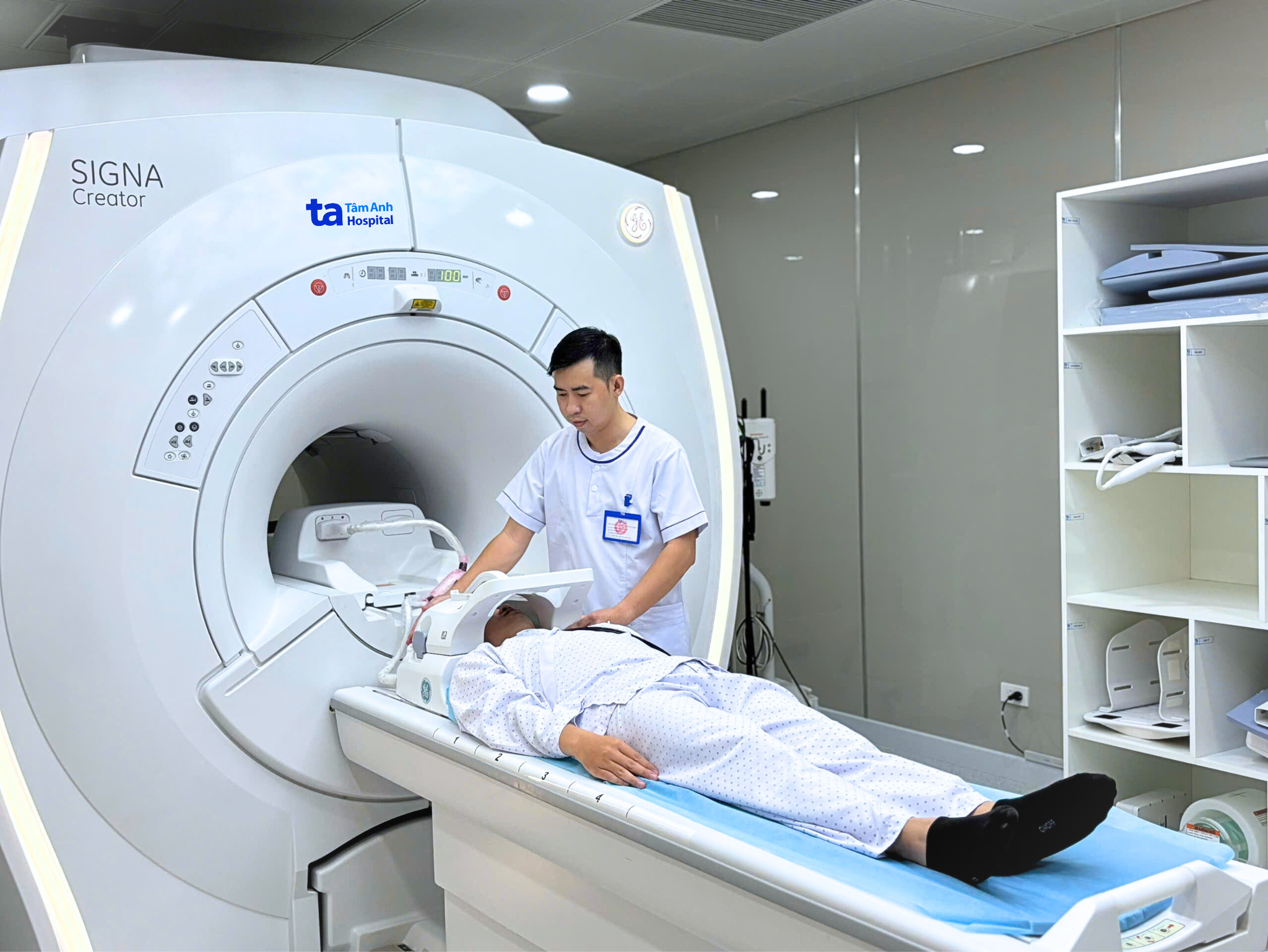 Medical staff prepare a patient for an MRI scan to assess moyamoya disease. Photo: Tam Anh General Hospital |