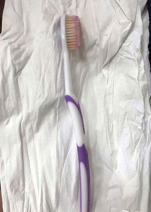 The toothbrush removed from the female patient's esophagus. Photo: _Thai Ha_ |
