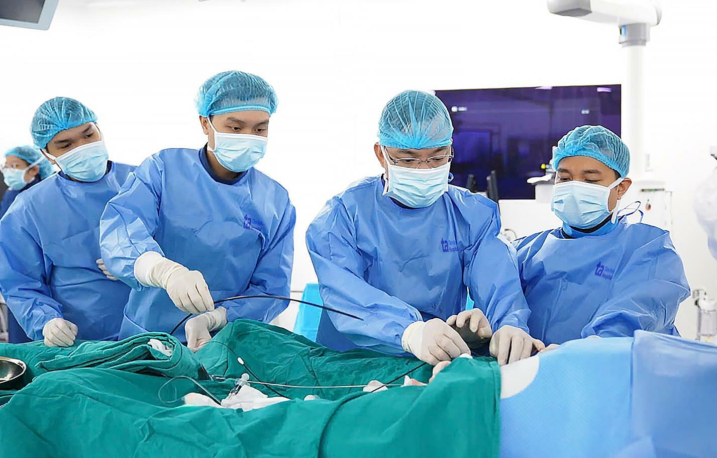 The intervention team placing a stent for Mr. Ngoc. Photo: Tam Anh General Hospital