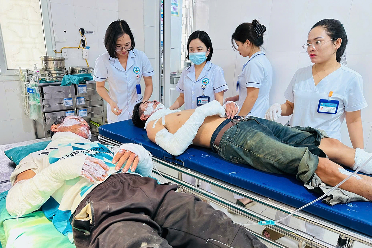 Relatives transported the two patients to Tan Ky Medical Center (formerly part of Tan Ky district) for emergency treatment at noon on 28/4, both suffering burns to their heads, faces, necks, and limbs.