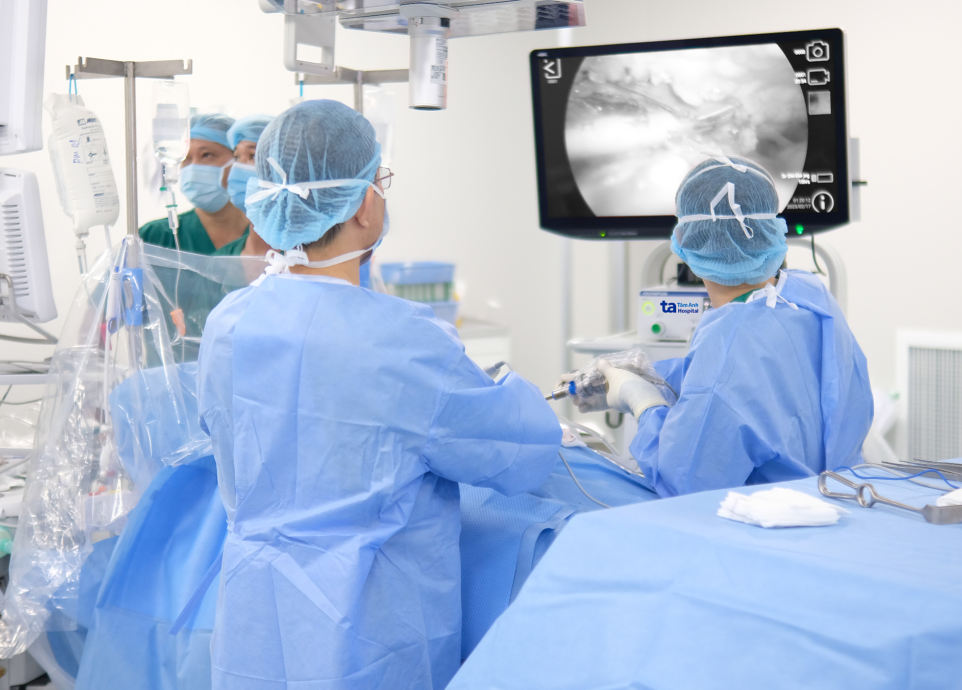 The surgical team made two small incisions (5 mm) in both armpits, inserted endoscopic instruments, and collapsed the lung to create ample space for the procedure and prevent lung tissue damage during surgery. With camera assistance, doctors clearly observed the sympathetic ganglia and resected the bilateral thoracic sympathetic ganglia group to reduce sweating in both hands. Before completing the surgery, the team re-inflated the lung, ensuring the patient's respiratory function returned to its original state. After the surgery, Thanh's hands were dry.