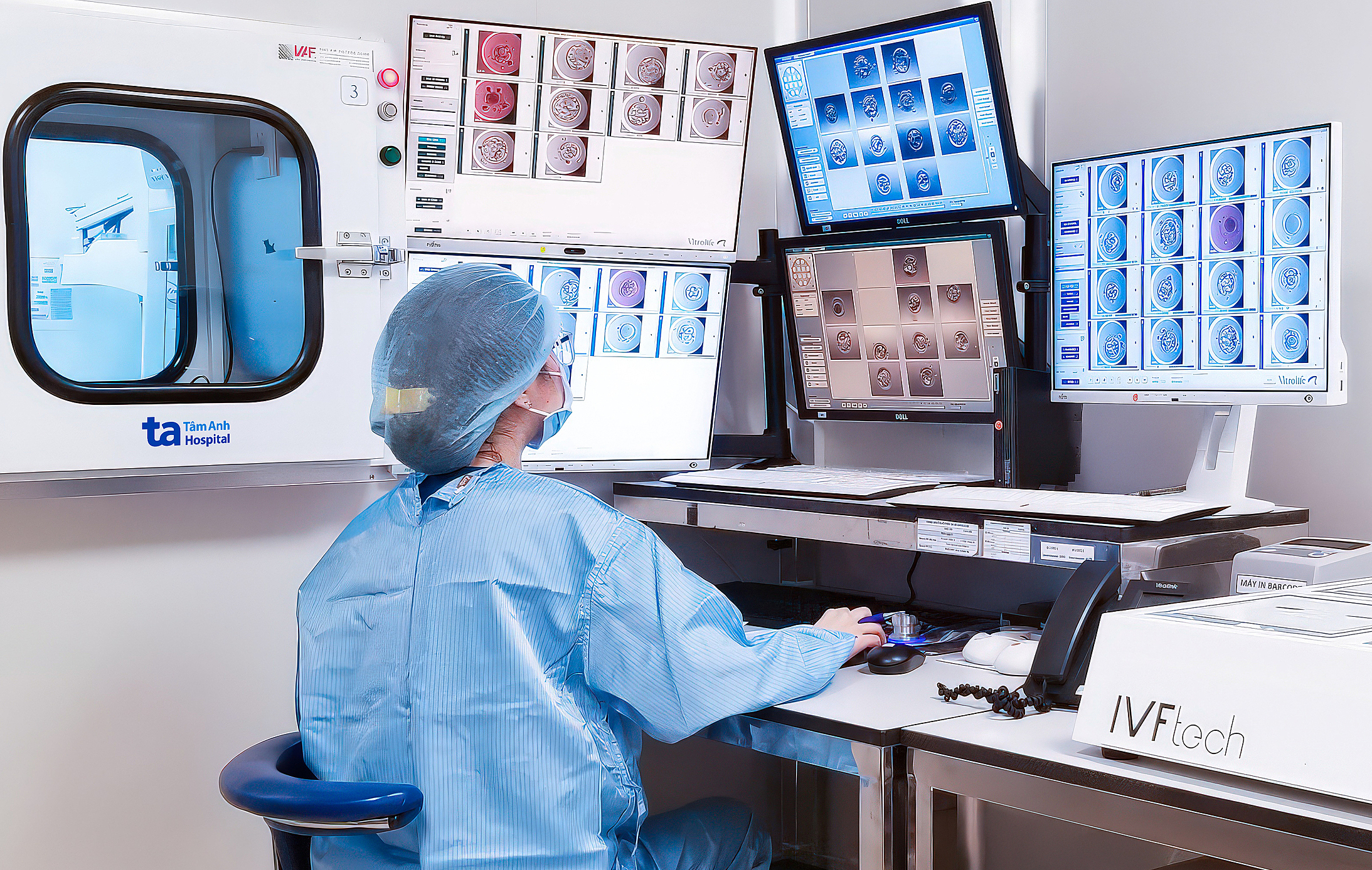 Embryologists observe embryo development through a time-lapse incubator system. *Photo: Thanh Luan*